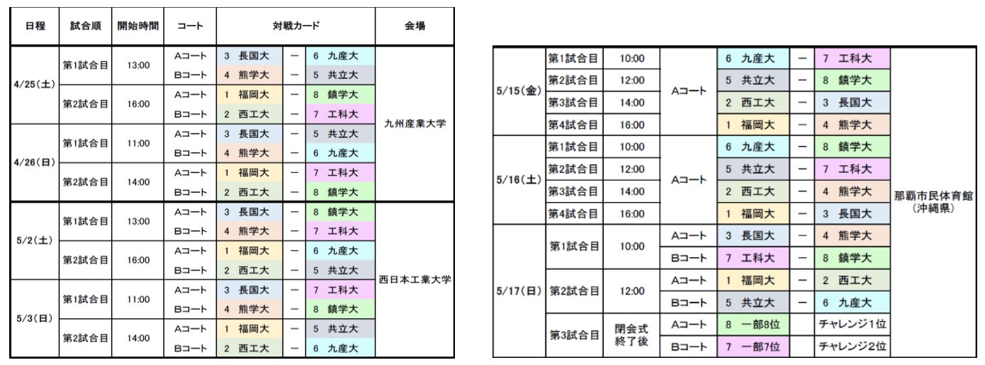 | 西日本工業大学 (福岡) | 0 | 0-0 0-0 0-0 | 0 | 九州共立大学 (福岡) |