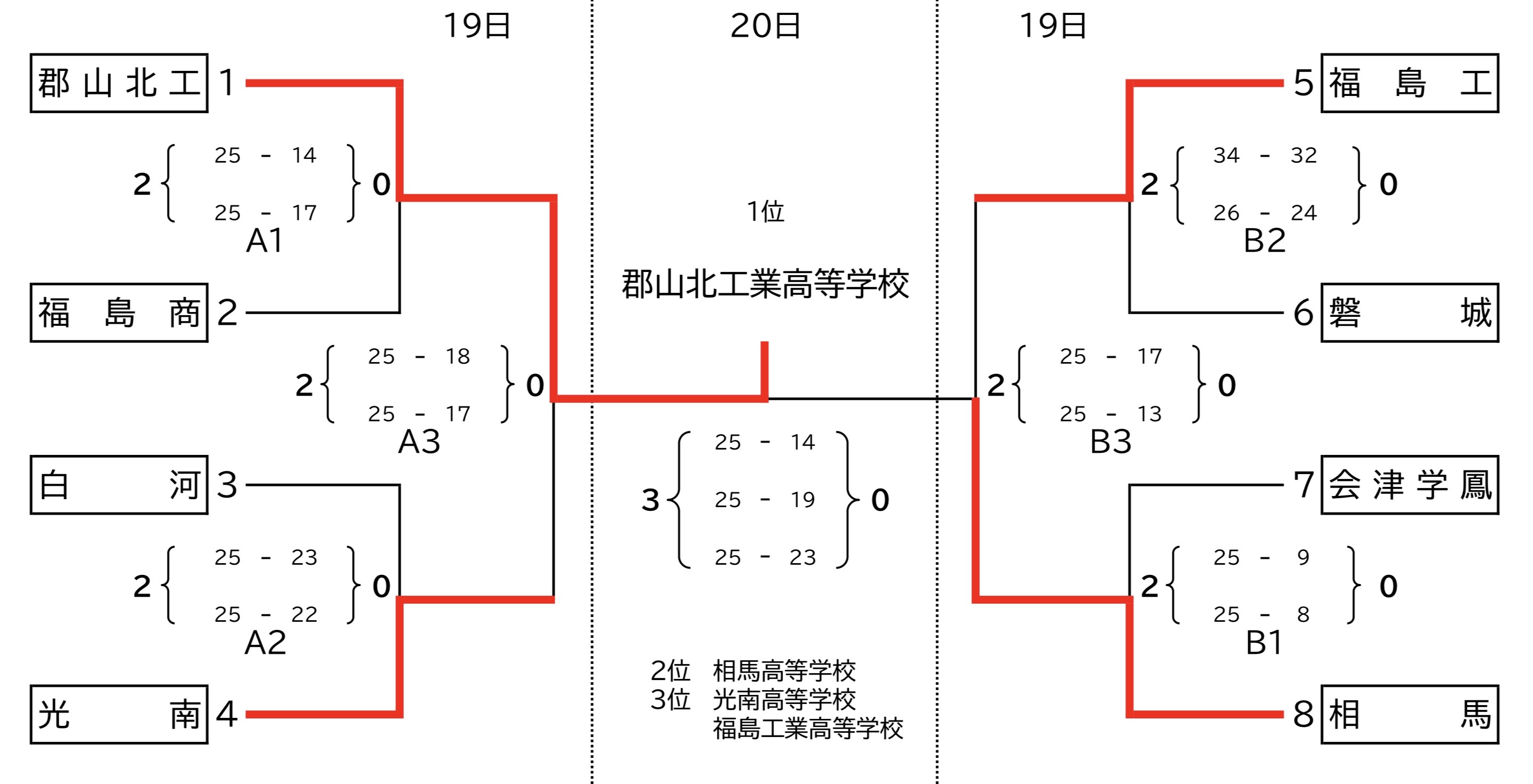 | 郡山北工業 | 2 | 25-18 25₋17 | 0 | 光 南 |