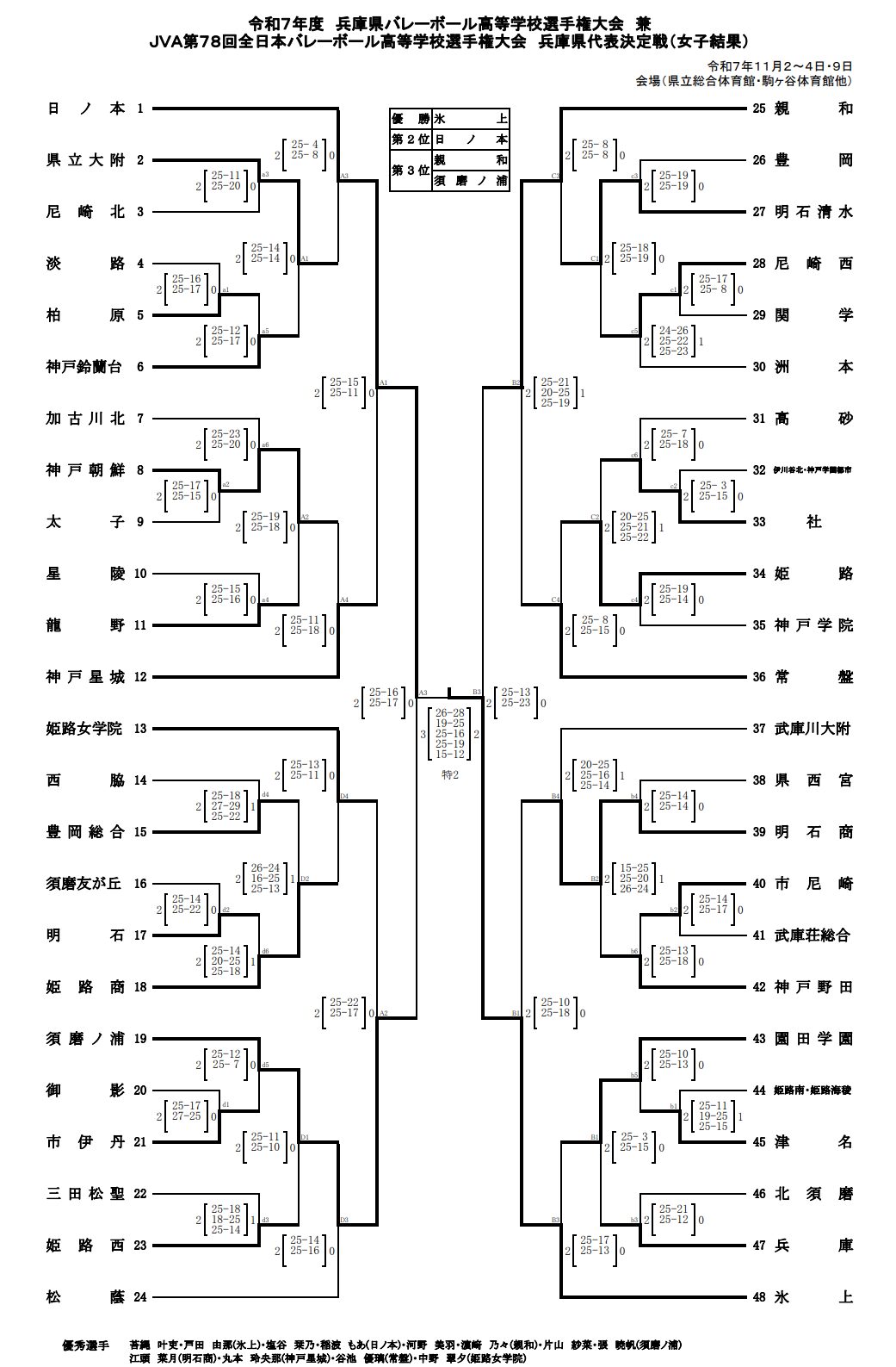 兵庫 2026春高バレー|第78回全日本バレーボール高校選手権 代表決定戦 女子結果