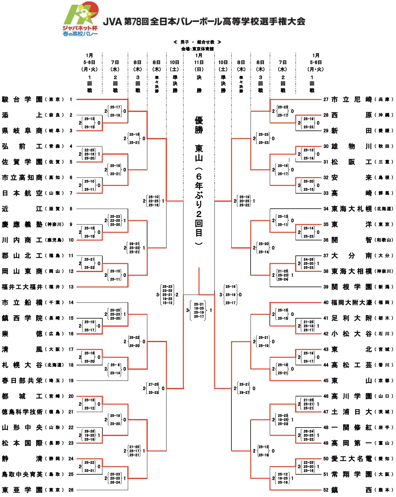 2026春高バレー|第78回全日本バレーボール高等学校選手権大会 男子試合結果