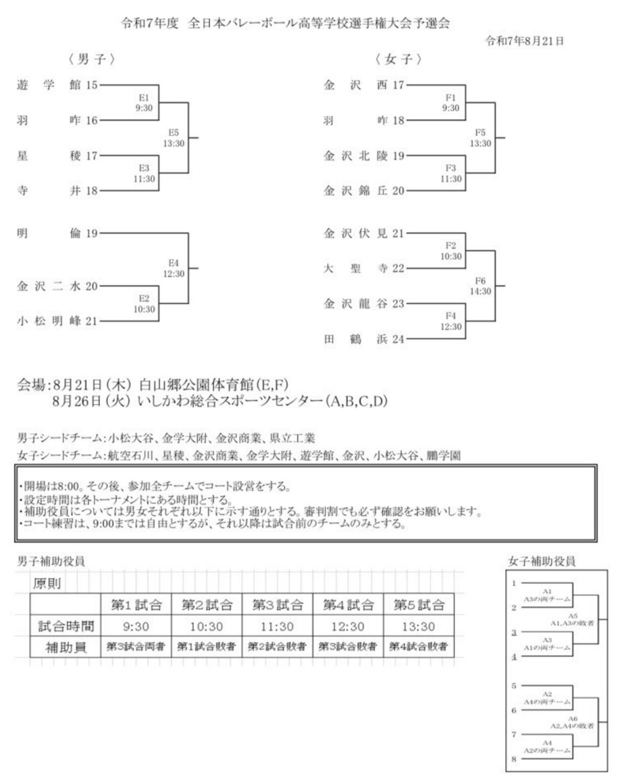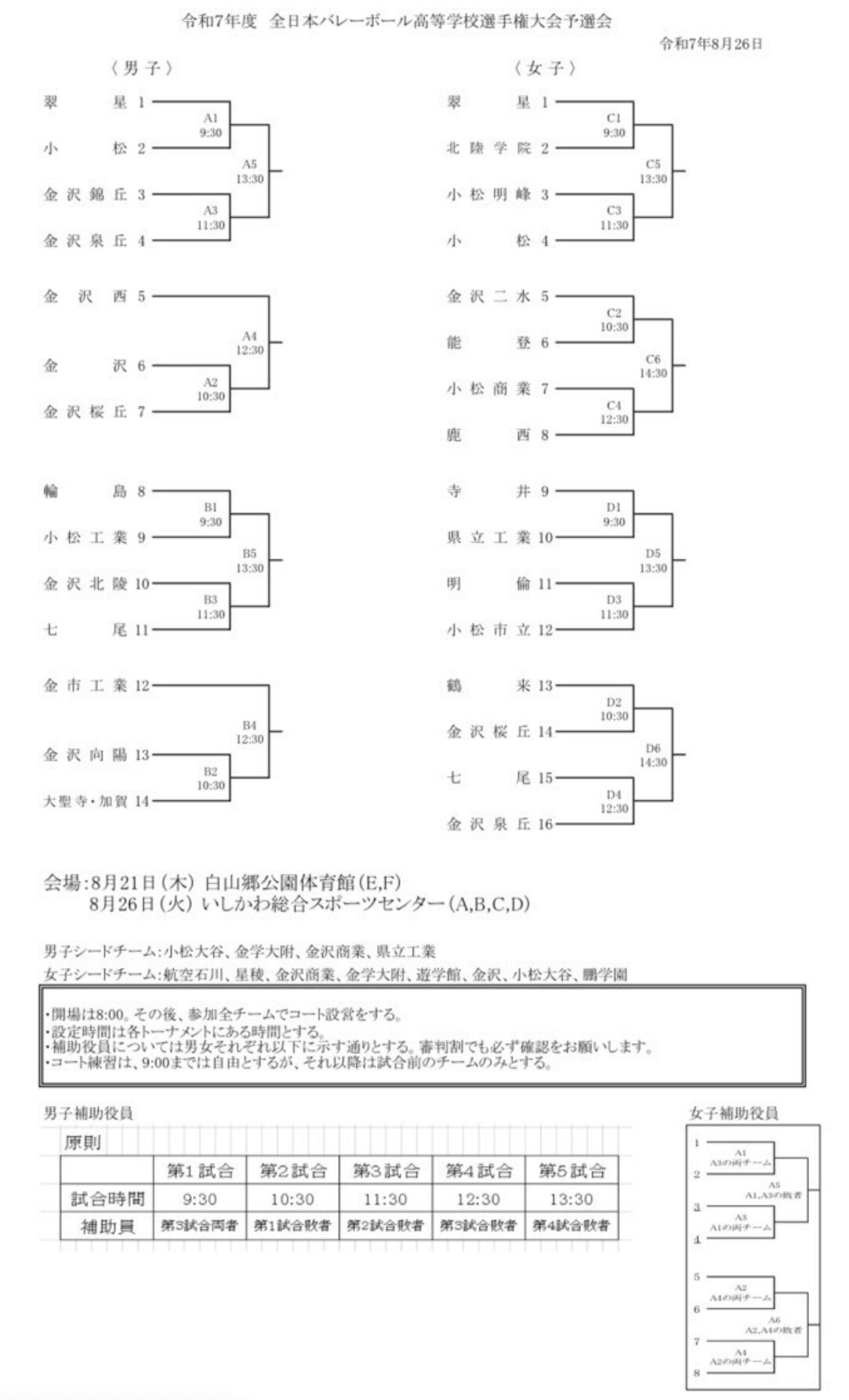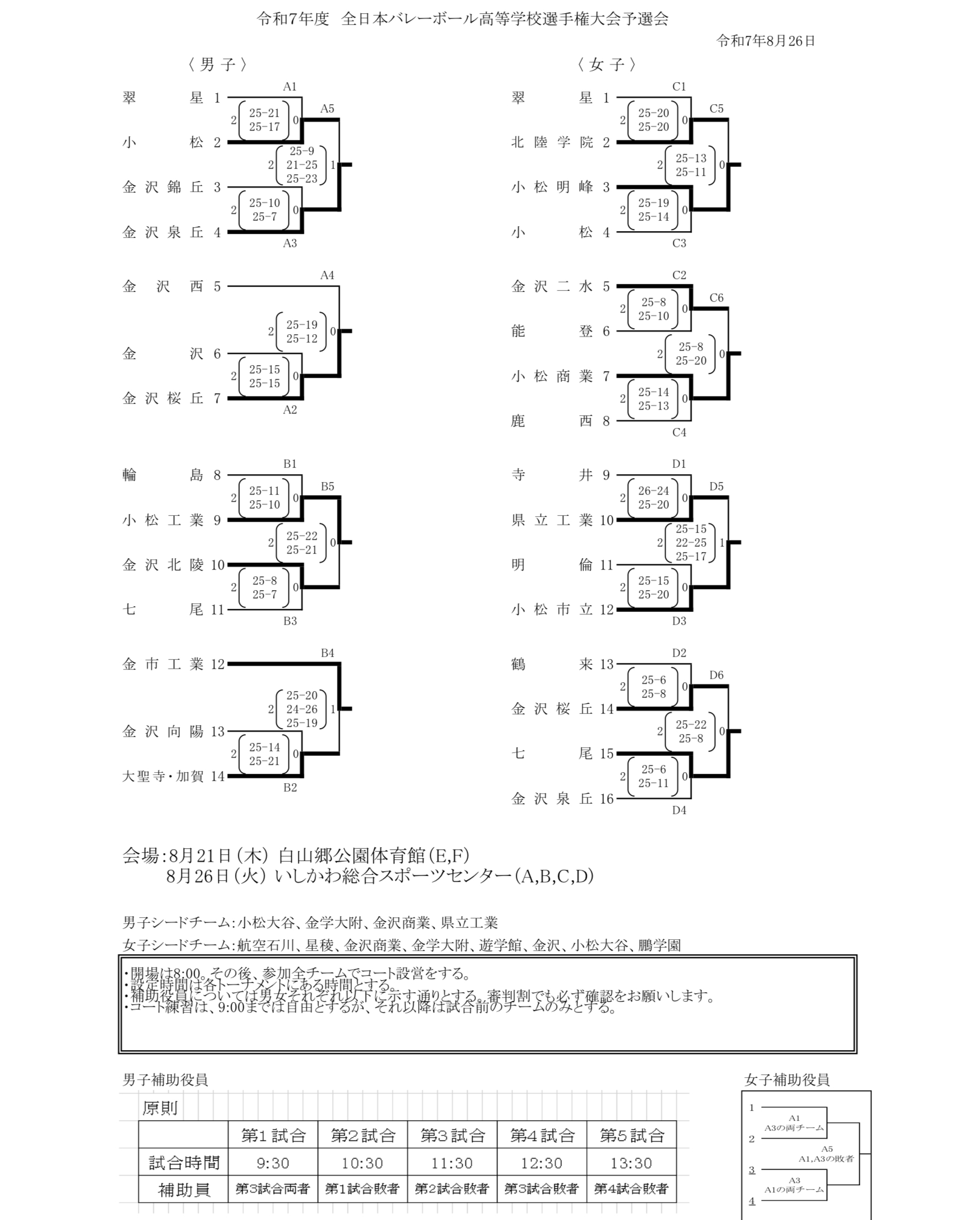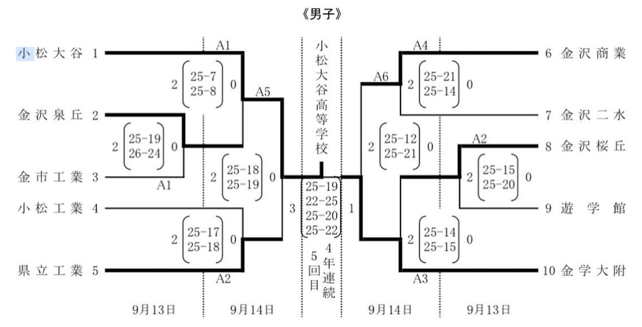 | 小松大谷 | 2 | 25-7 25-8 | 0 | 金沢泉丘 |