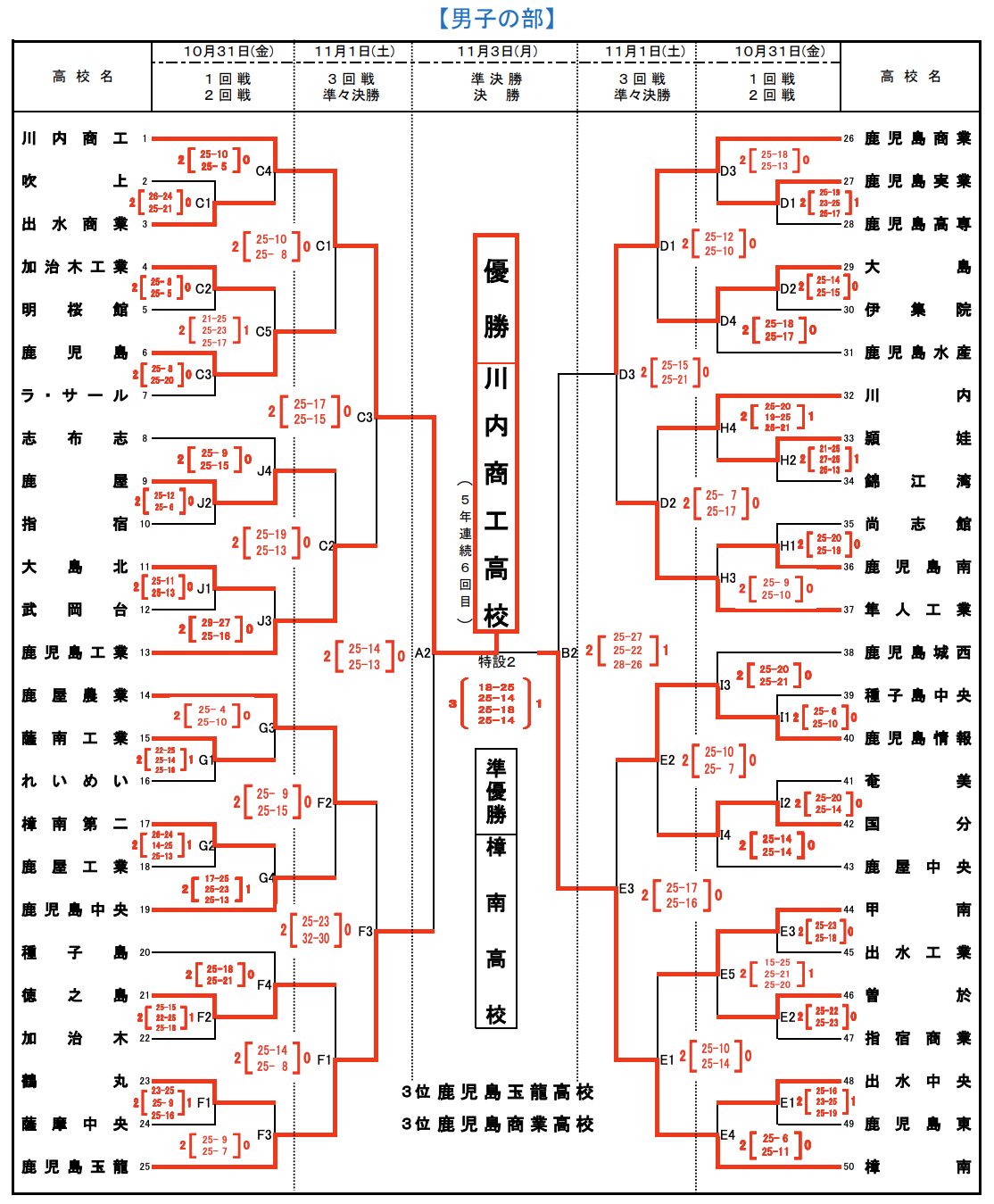 | 川内商工 | 2 | 25-17 25-15 | 0 | 鹿児島工業 |