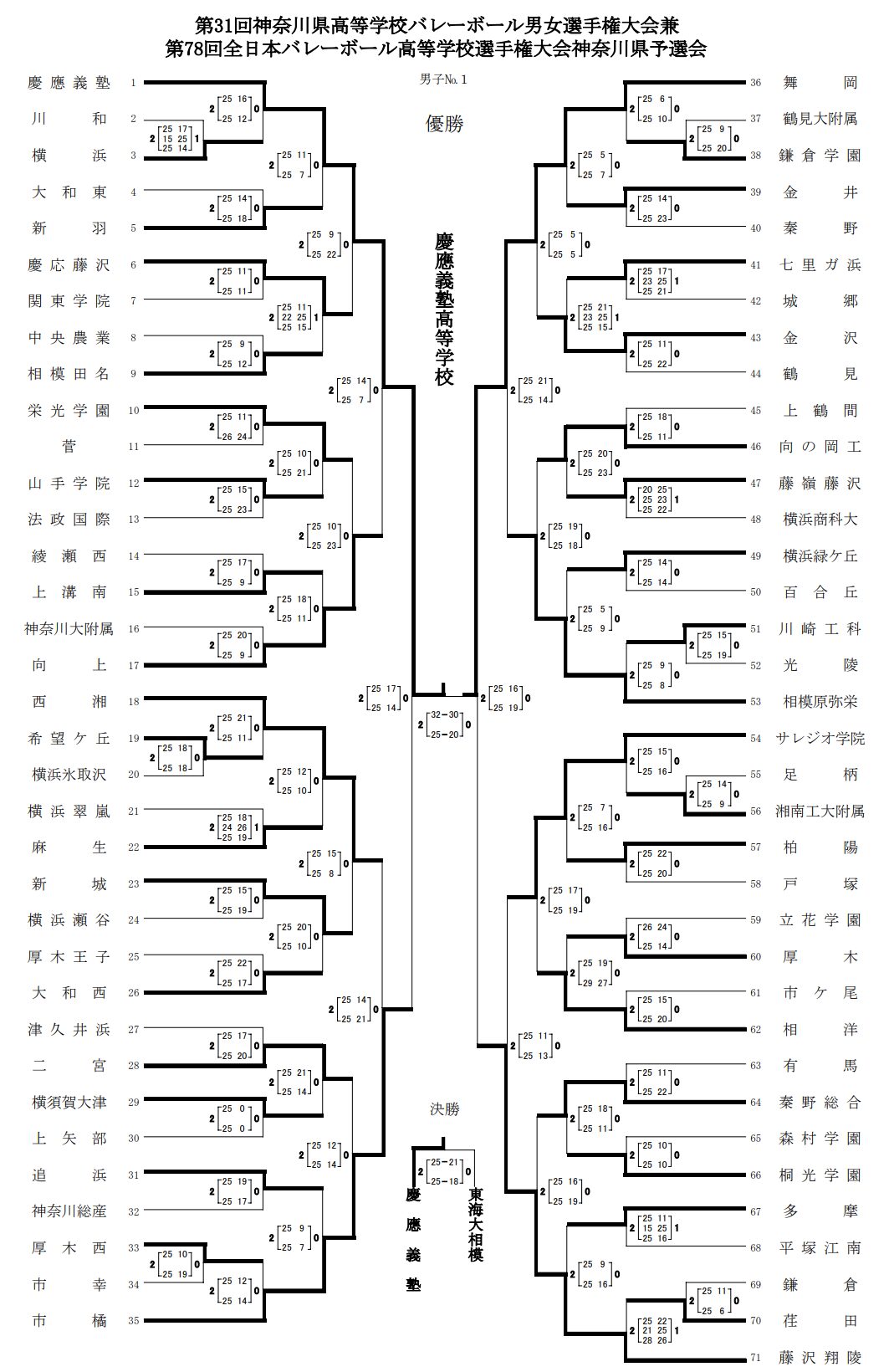 | 慶應義塾 | 2 | 25-21 25-18 | 0 | 東海大相模 |