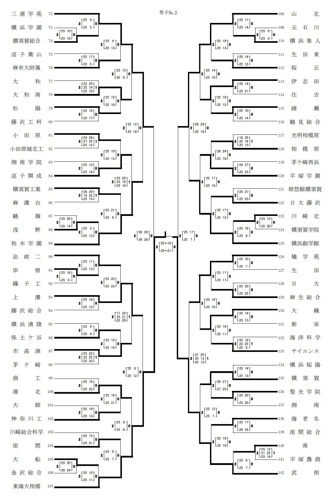 | 東海大相模 | 2 | 25-19 25-21 | 0 | 武 相 |