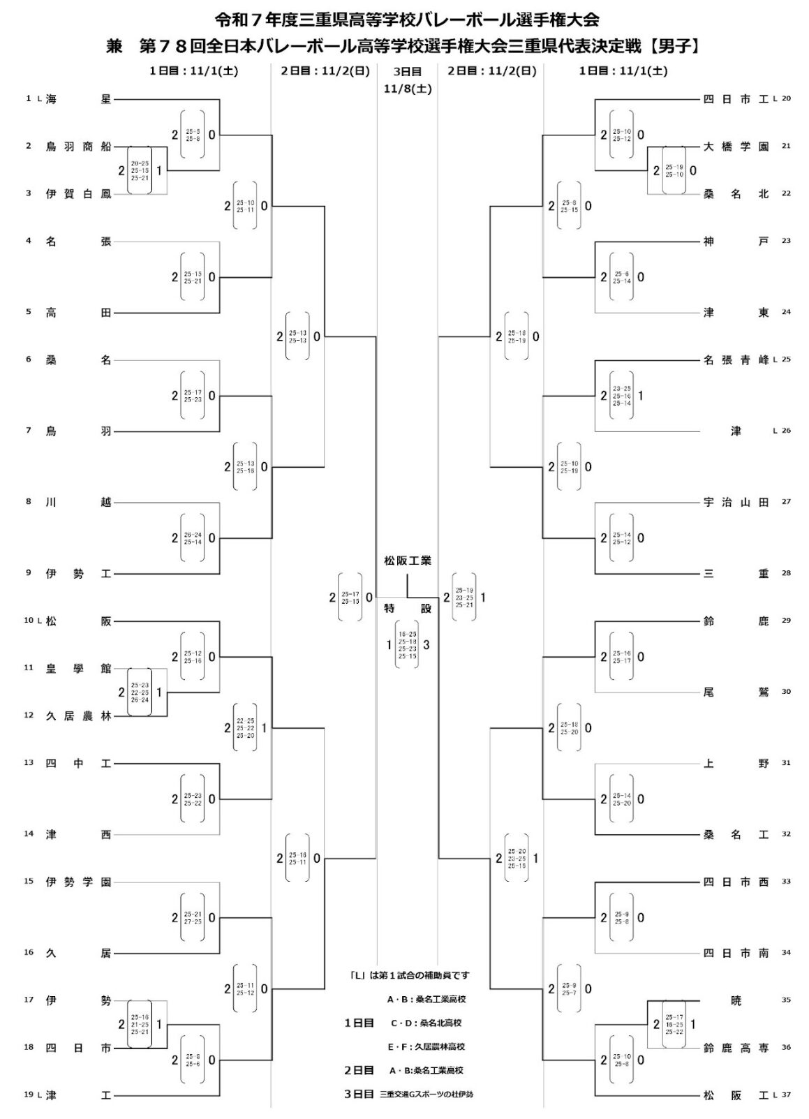 | 桑名工業 | 1 | 20-25 25-23 15-25 | 2 | 松阪工業 |
