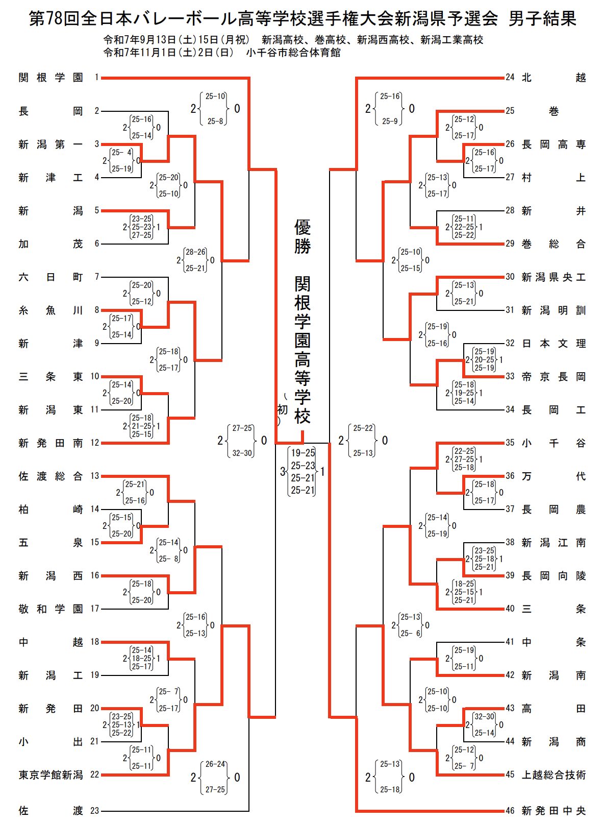 | 巻 | 2 | 25-10 25-15 | 0 | 新潟県央工業 |