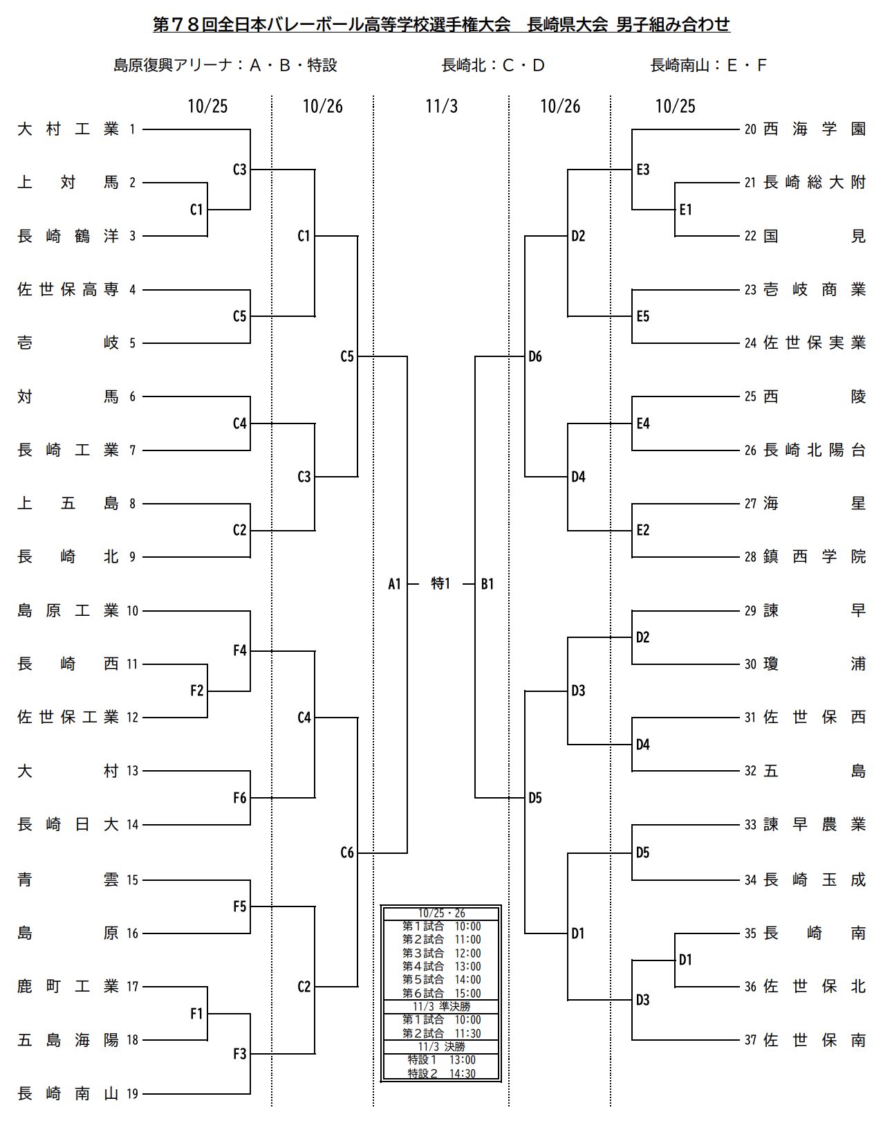 | 長崎工業 | 2 | 25-22 25-21 | 0 | 長崎北 |