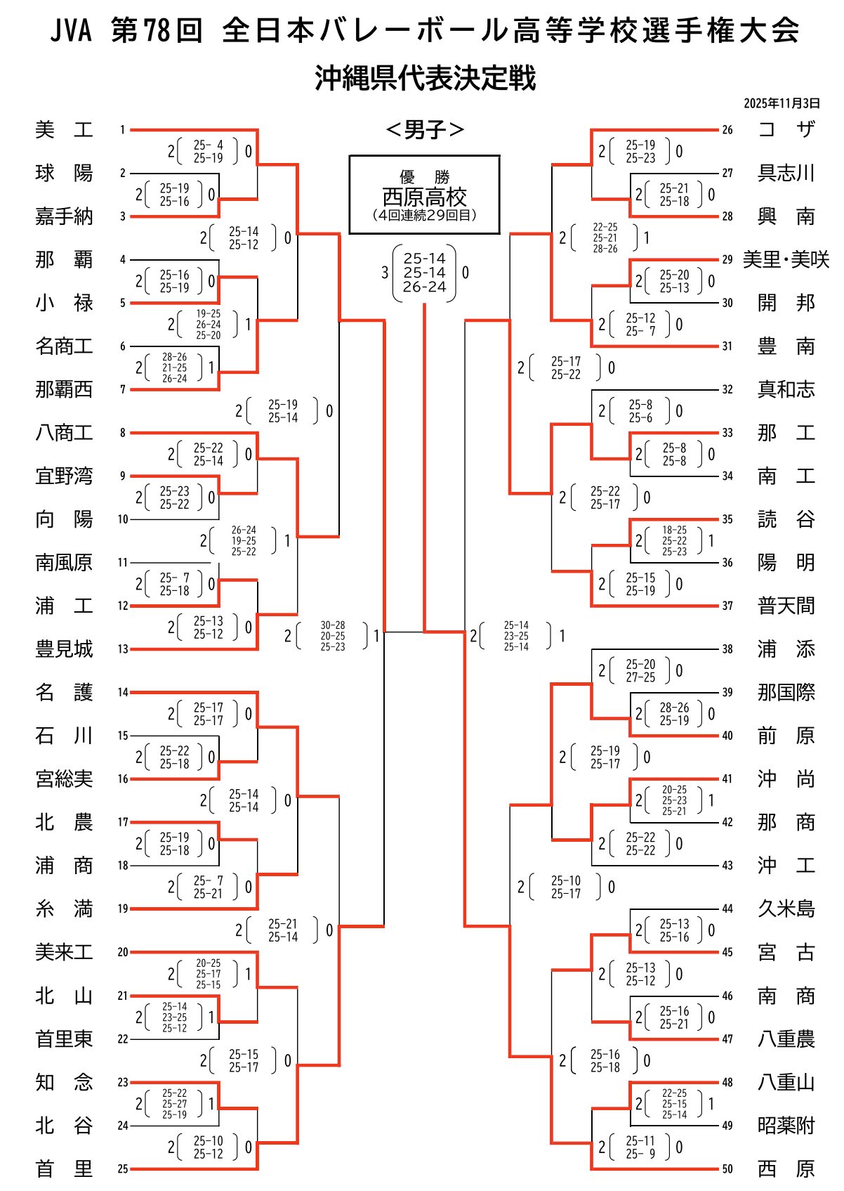 2025年度『第78回全日本バレーボール高等学校選手権大会 沖縄県代表決定戦』男子の全試合が終了しました。