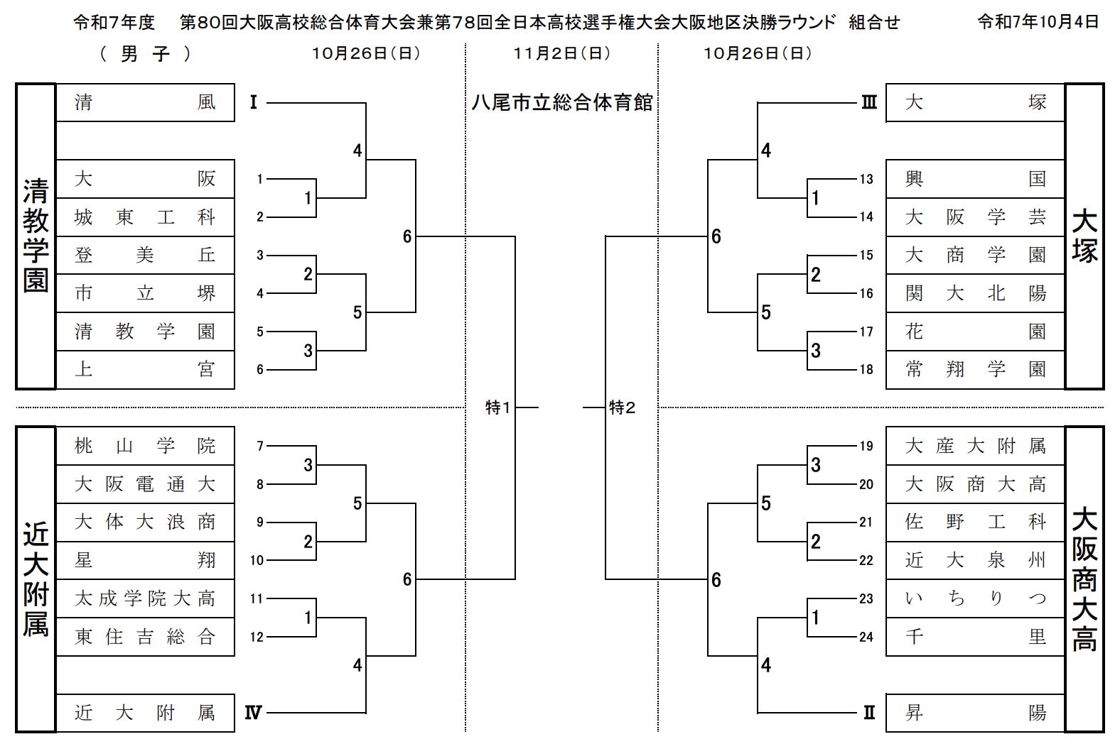 男子 清教学園高校、近大附属高校、大塚高校、大阪商大高校