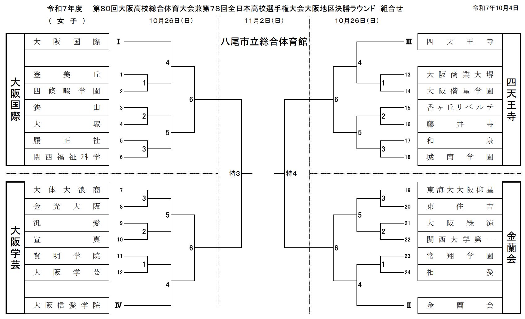女子 大阪国際高校、大阪学芸高校、四天王寺高校、金蘭会高校