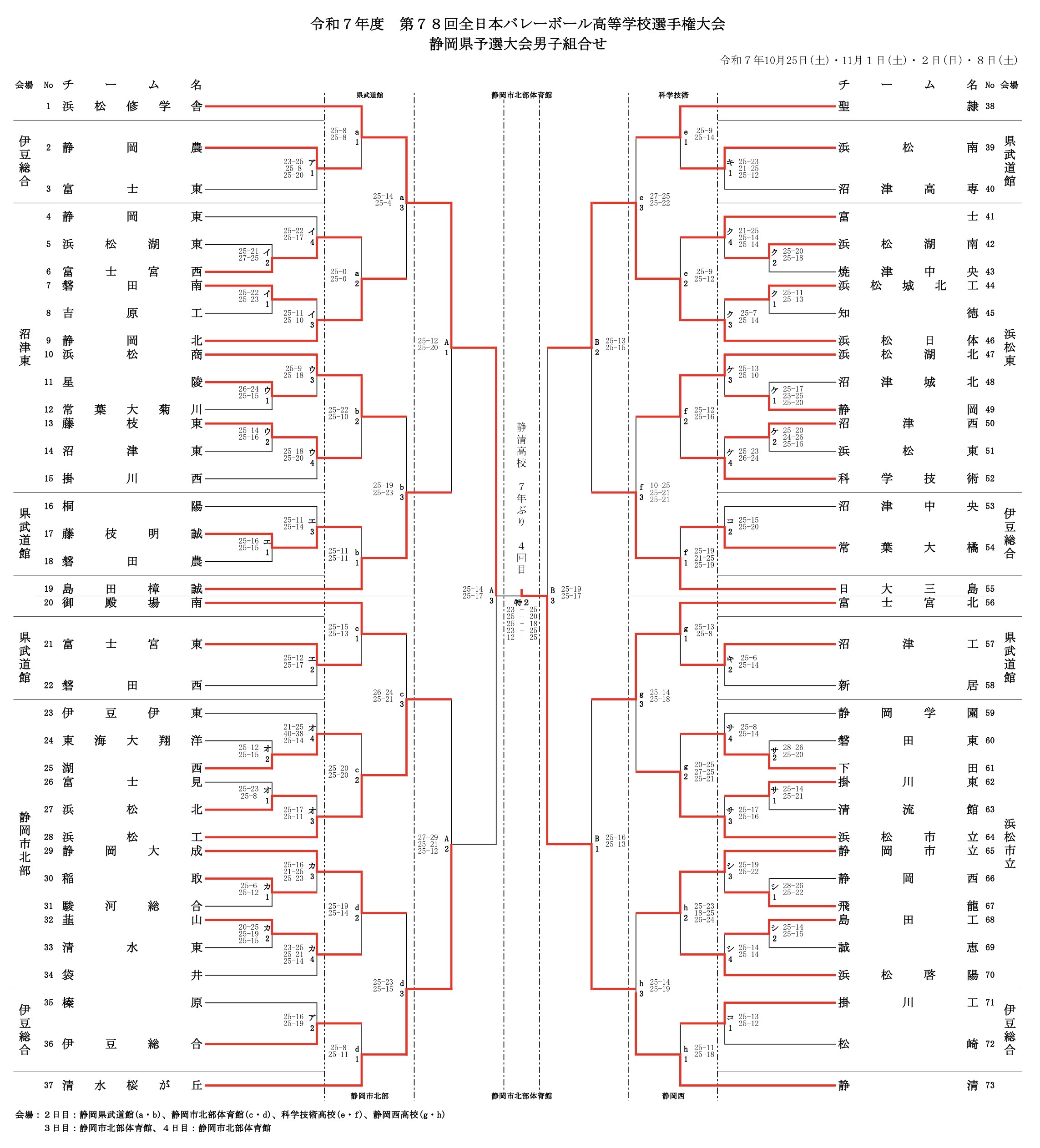 | 浜松商業 | 2 | 25-22 25-10 | 0 | 藤枝東 |