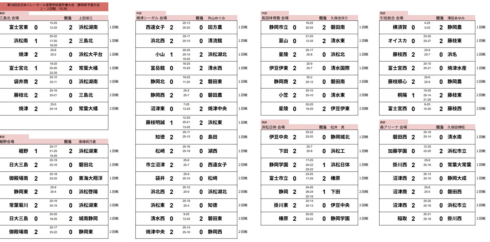 三島北、焼津市総合、引佐総合、森町総合、裾野、静岡市長田体育館、浜松日体