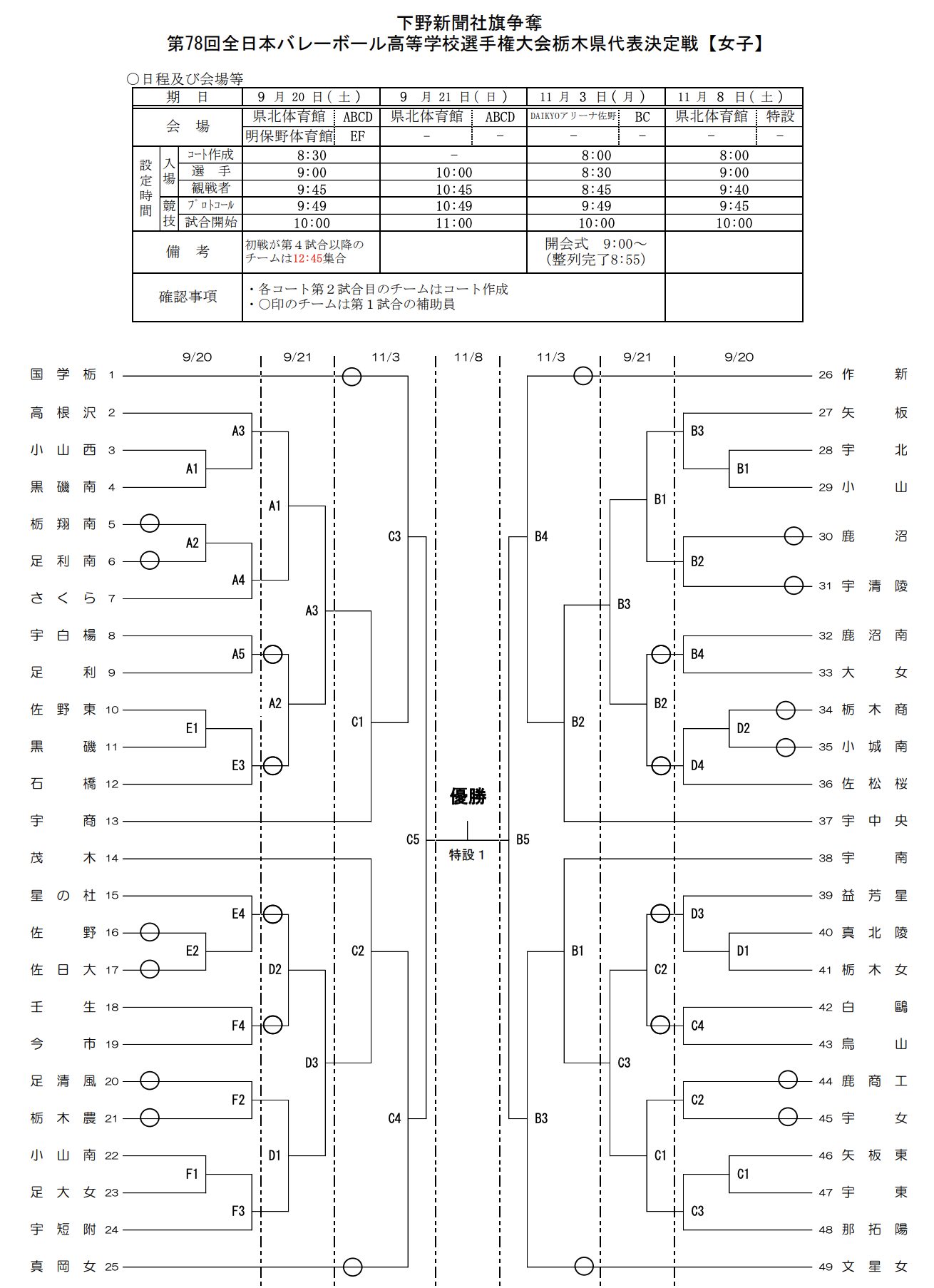 冒頭でも書きましたが、『第78回全日本バレーボール高等学校選手権大会 栃木県代表決定戦』が始まります。今年最後の大舞台の代表権を獲得するチームはどこになるのでしょうか?