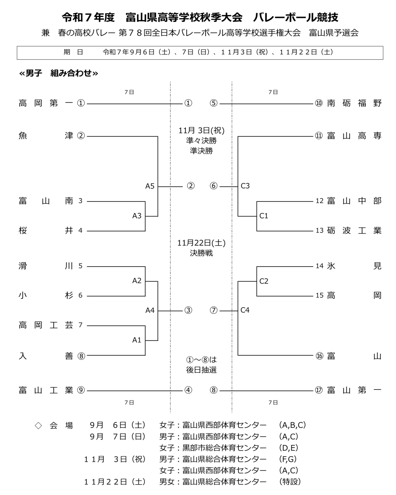 富山県の男子の有力はやはり、高岡第一高校、富山第一高校、南砺福野高校、富山工業高校が中心になるのでしょうね!