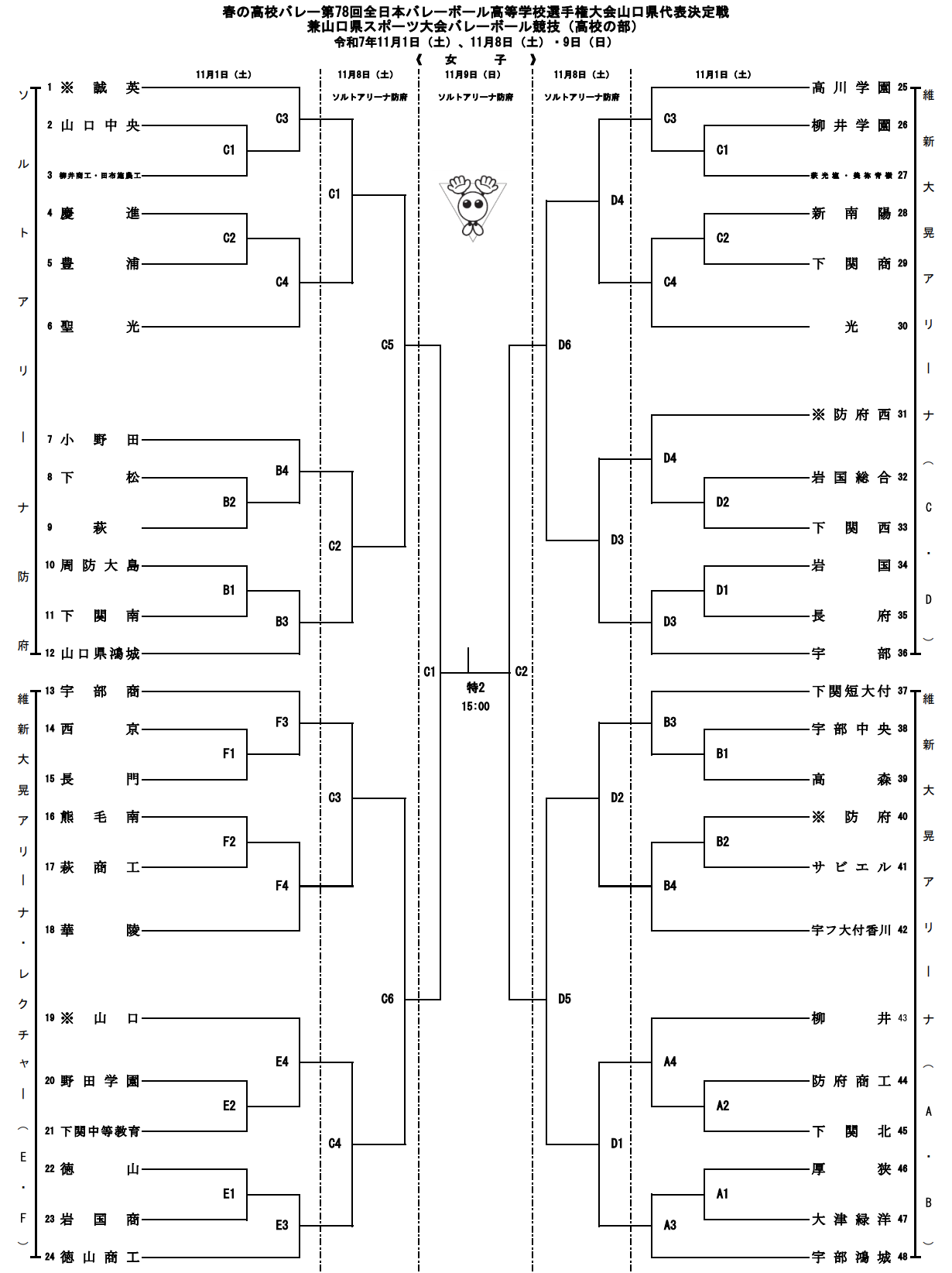 女子 維新百年記念公園、維新大晃アリーナ、防府市スポーツセンター、ソルトアリーナ防府