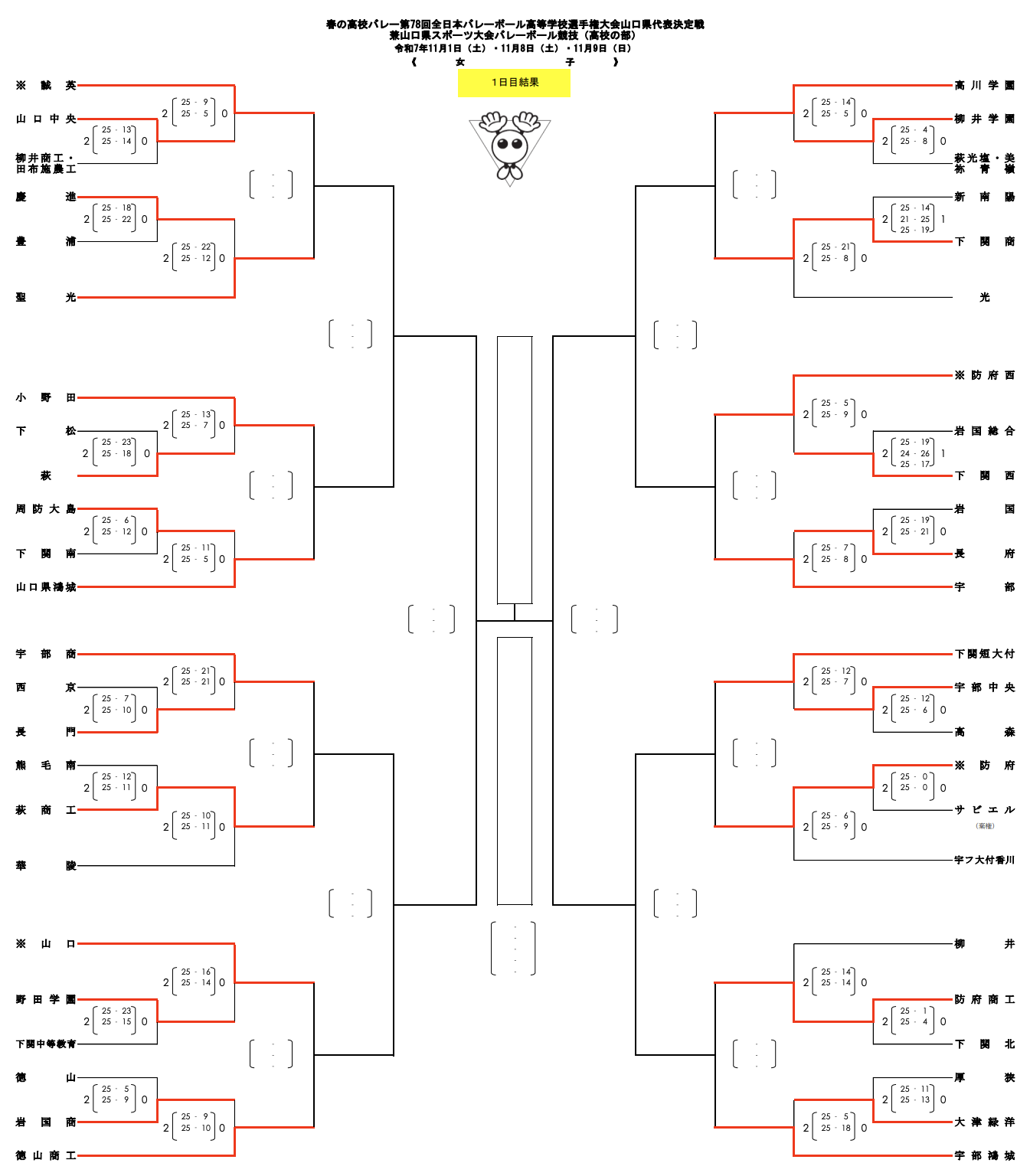 | 岩国総合 | 1 | 19-25 26-24 17-25 | 2 | 下関西 |