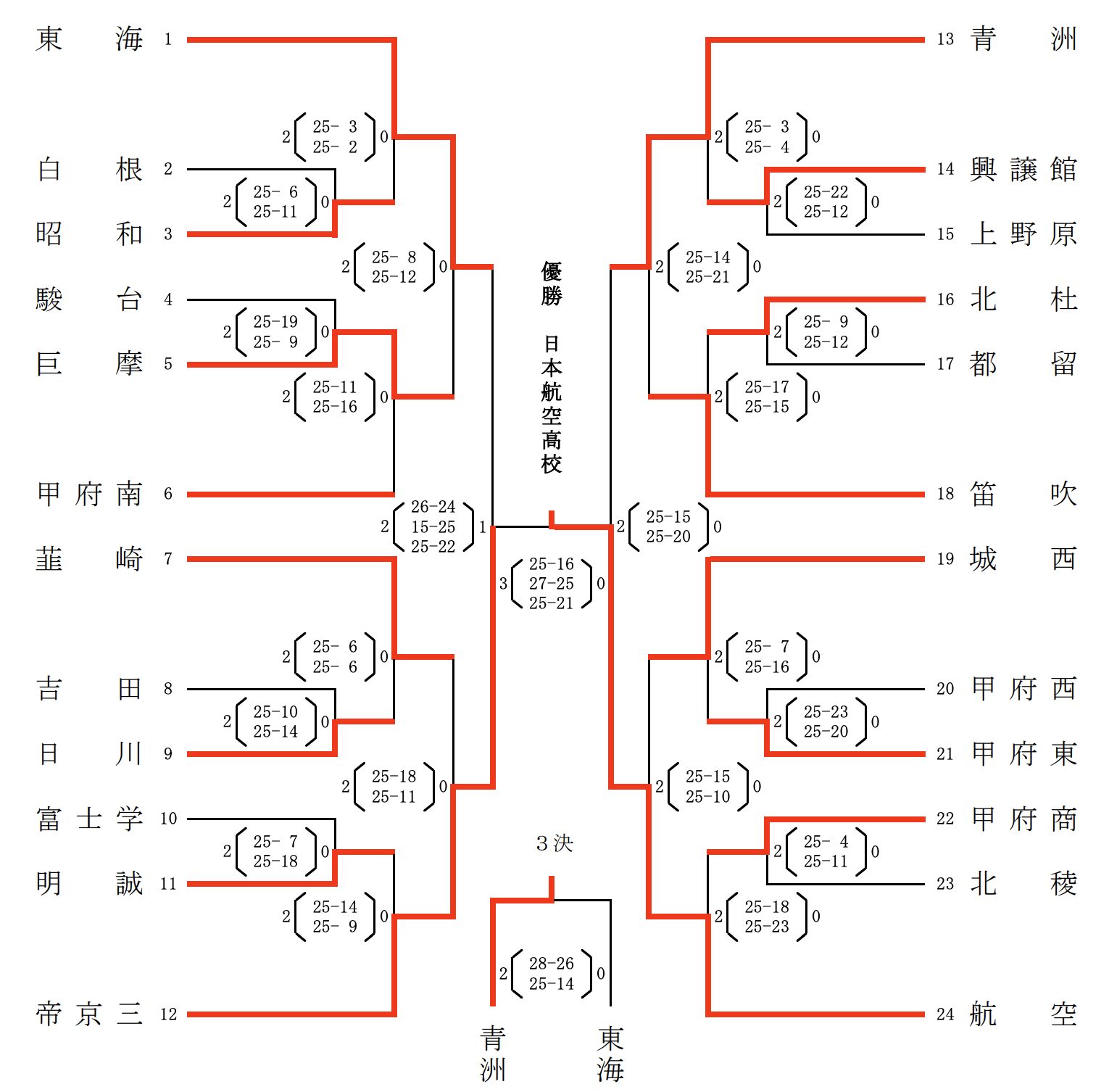 | 東海大甲府 | 2 | 25-3 25-2 | 0 | 甲府昭和 |