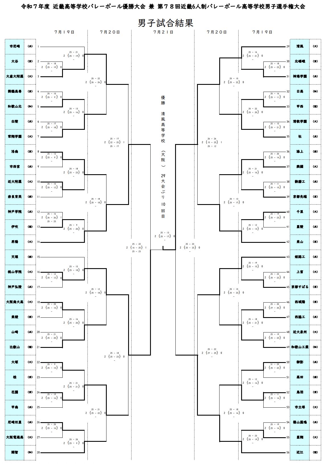 | 清 風 (大阪1位) | 2 | 25-23 25-23 | 0 | 近 江 (滋賀1位) |