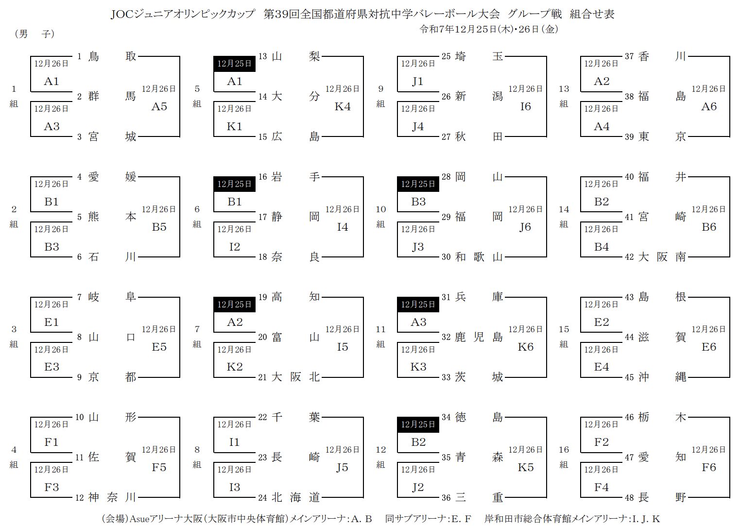 2025JOC|令和7年度 第39回全国都道府県対抗中学バレーボール大会 男子試合結果