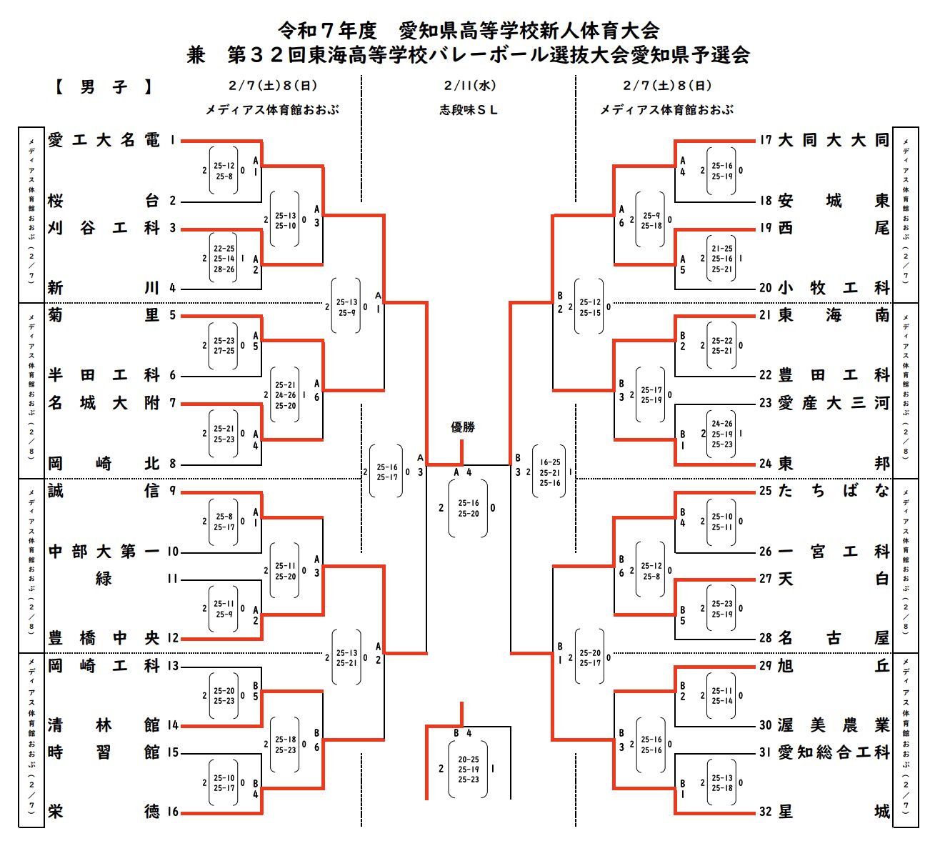 愛知 2025新人戦|令和7年度 高等学校新人バレーボール大会 男子結果