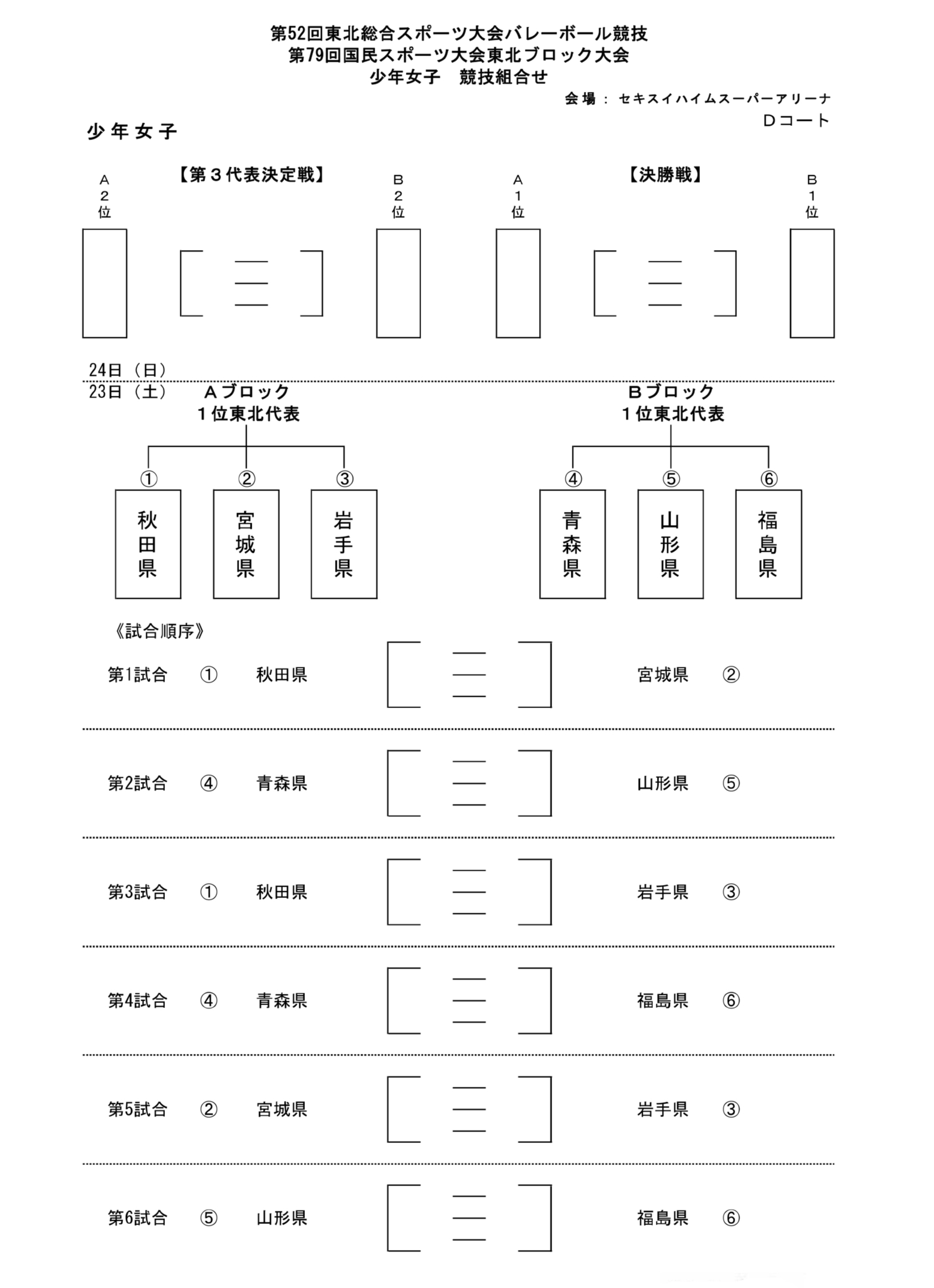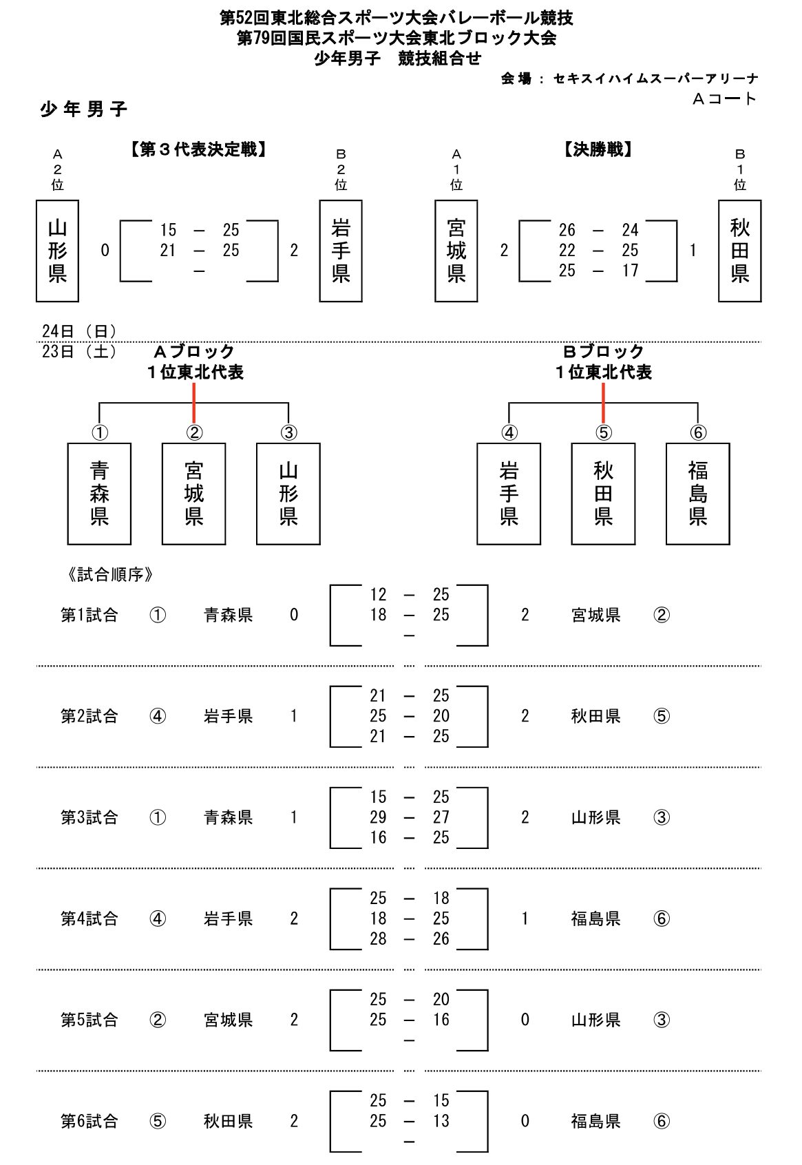 | 宮城県 | 2 | 26-24 22-25 25-17 | 1 | 秋田県 |