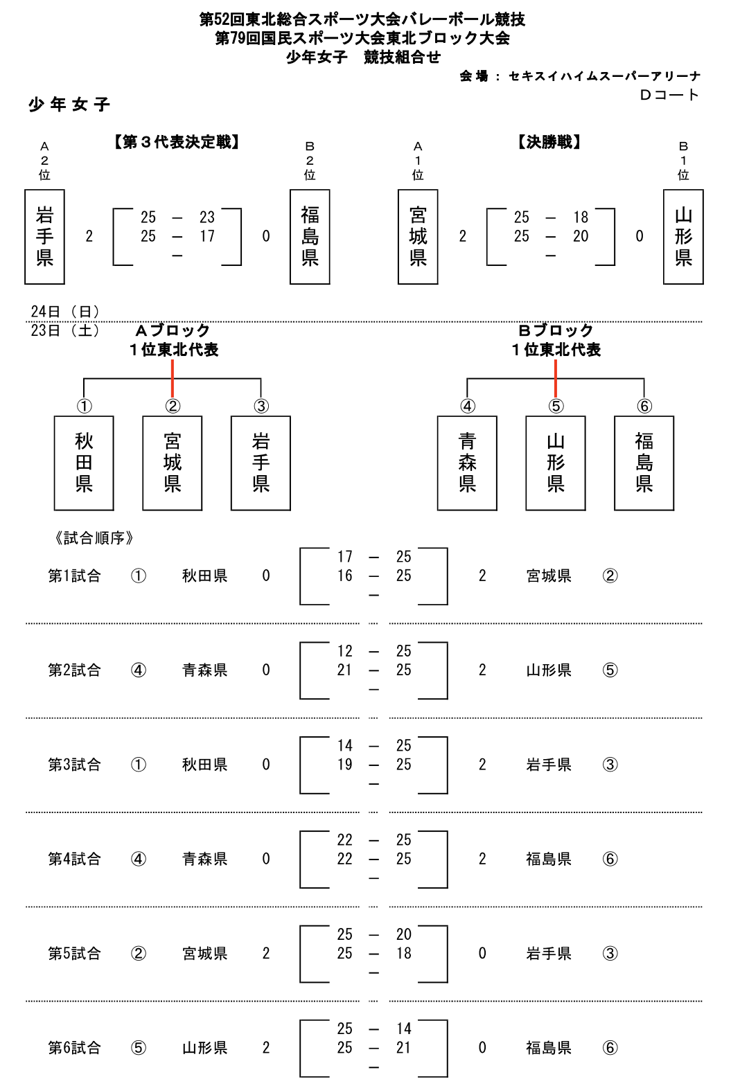 | 青森県 | 0 | 12-25 21-25 | 2 | 山形県 |