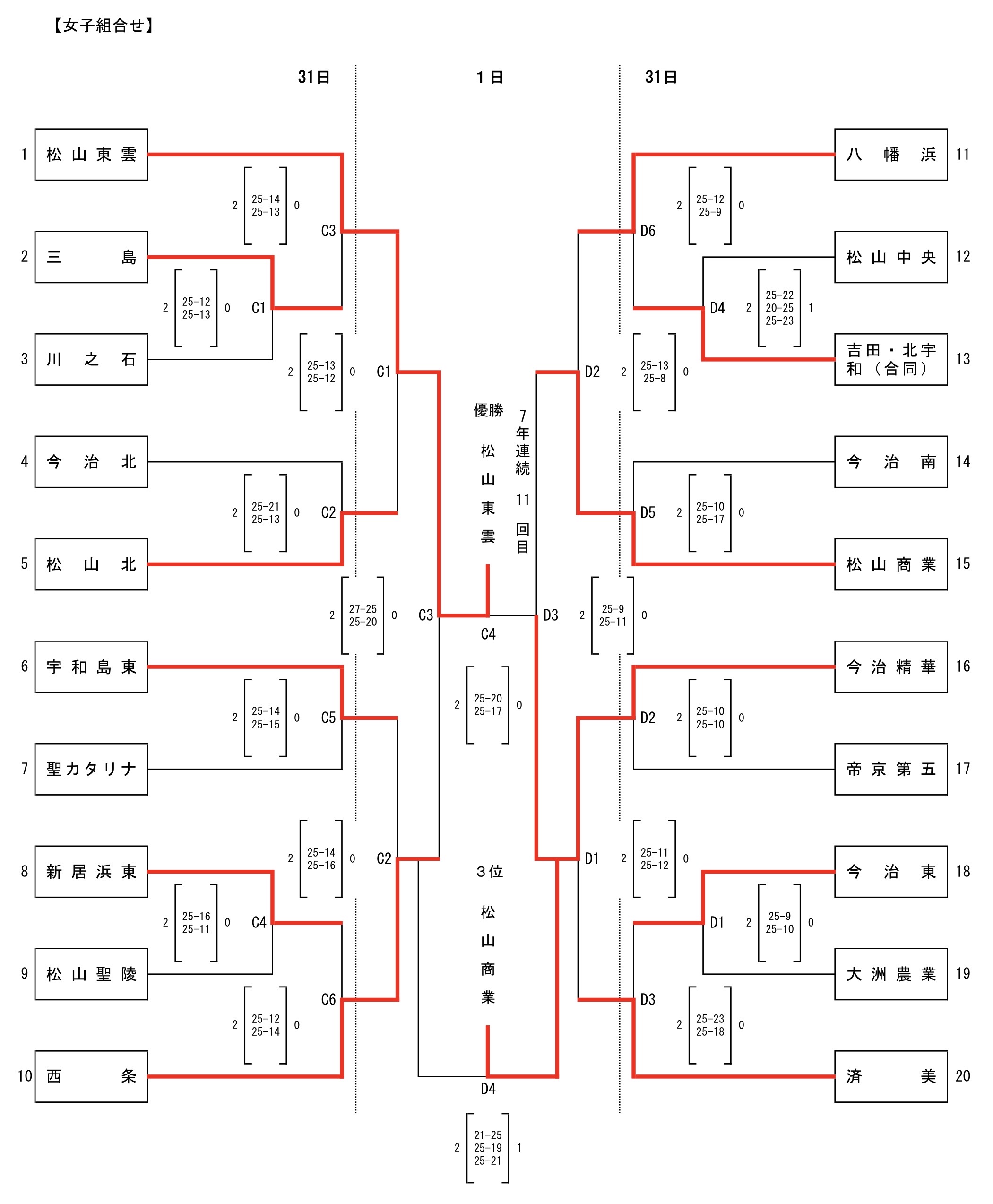 愛媛 2025新人戦|令和7年度 高等学校新人バレーボール大会 女子結果