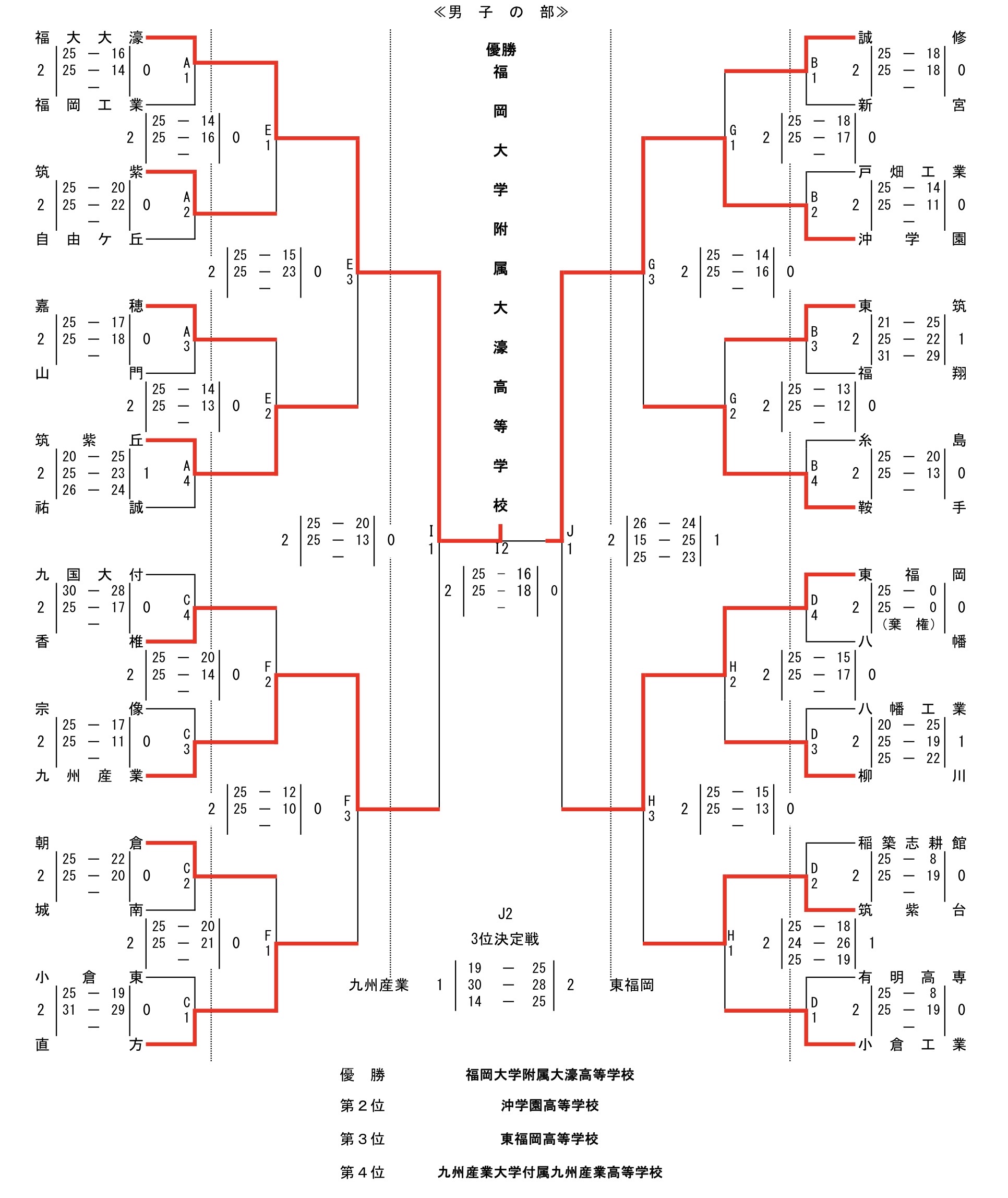 | 東福岡 | 2 | 25-0 25-0 | 0 | 八 幡 |