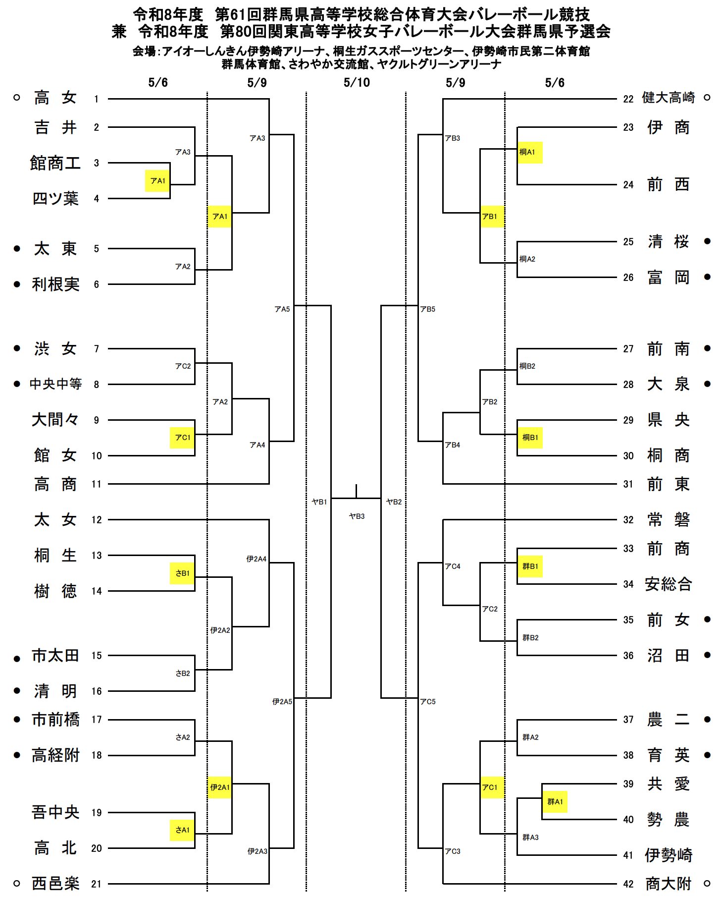 さわやか交流館、アイオーしんきん伊勢崎アリーナ、 伊勢崎第二市民体育館、 ヤクルトグリーンアリーナ