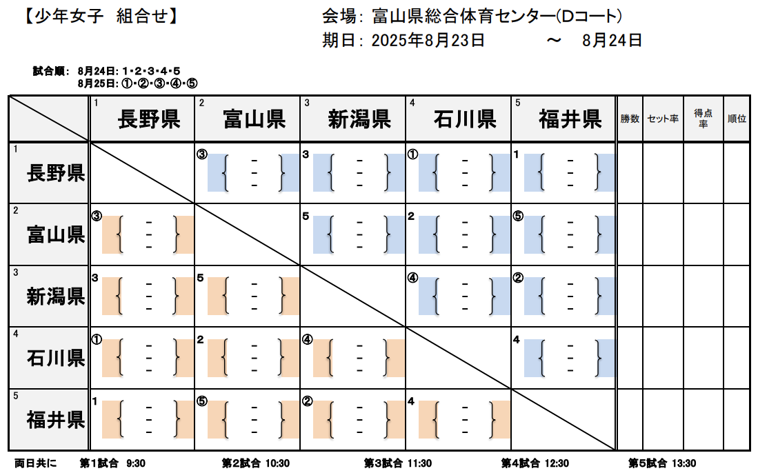 | 福井県 | 2 | 25-23 25-23 | 0 | 富山県 |