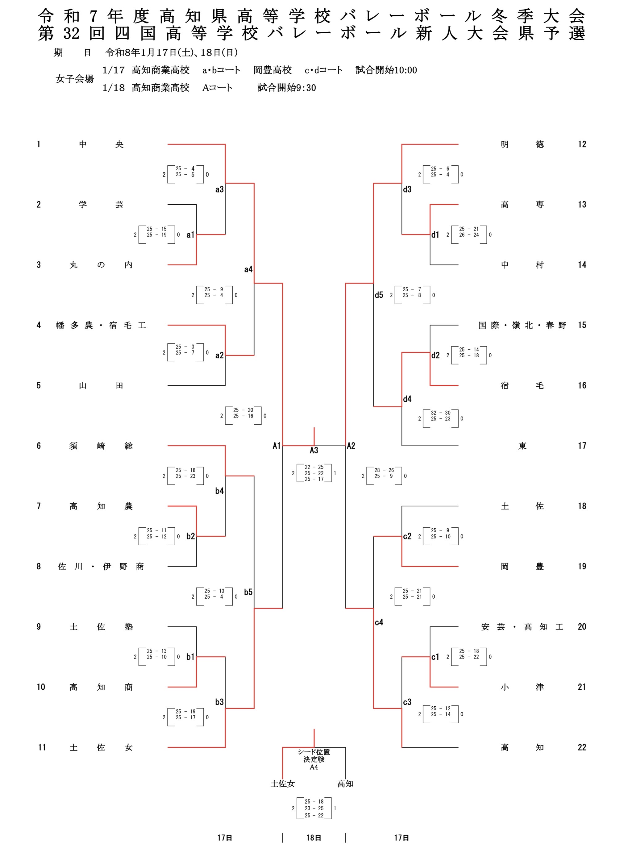 高知 2025新人戦|令和7年度 高等学校新人バレーボール大会 女子結果