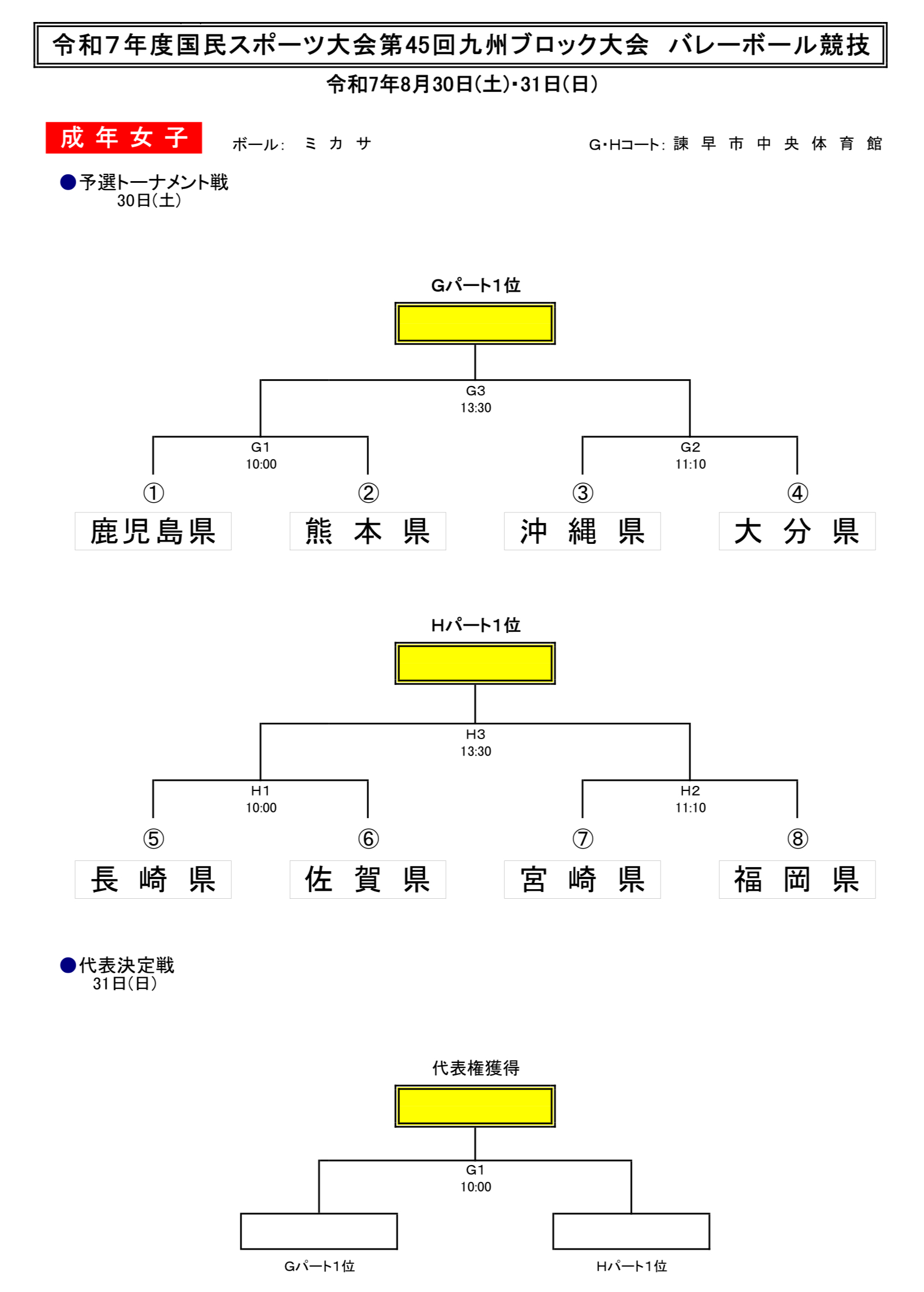 九州 2025SHIGA国スポ|第79回国民スポーツ大会バレーボールブロック予選 成年男女結果