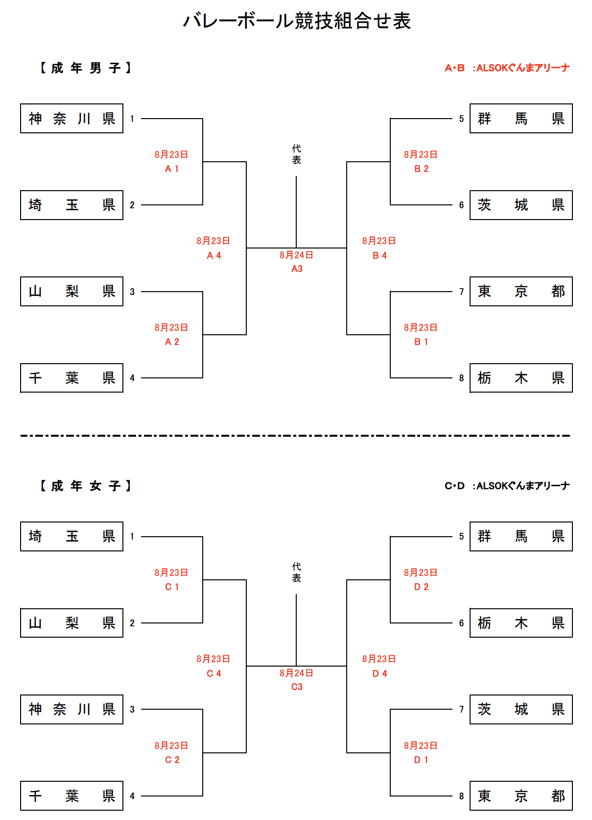 | 群馬県 | 2 | 25-16 258-14 | 0 | 栃木県 |