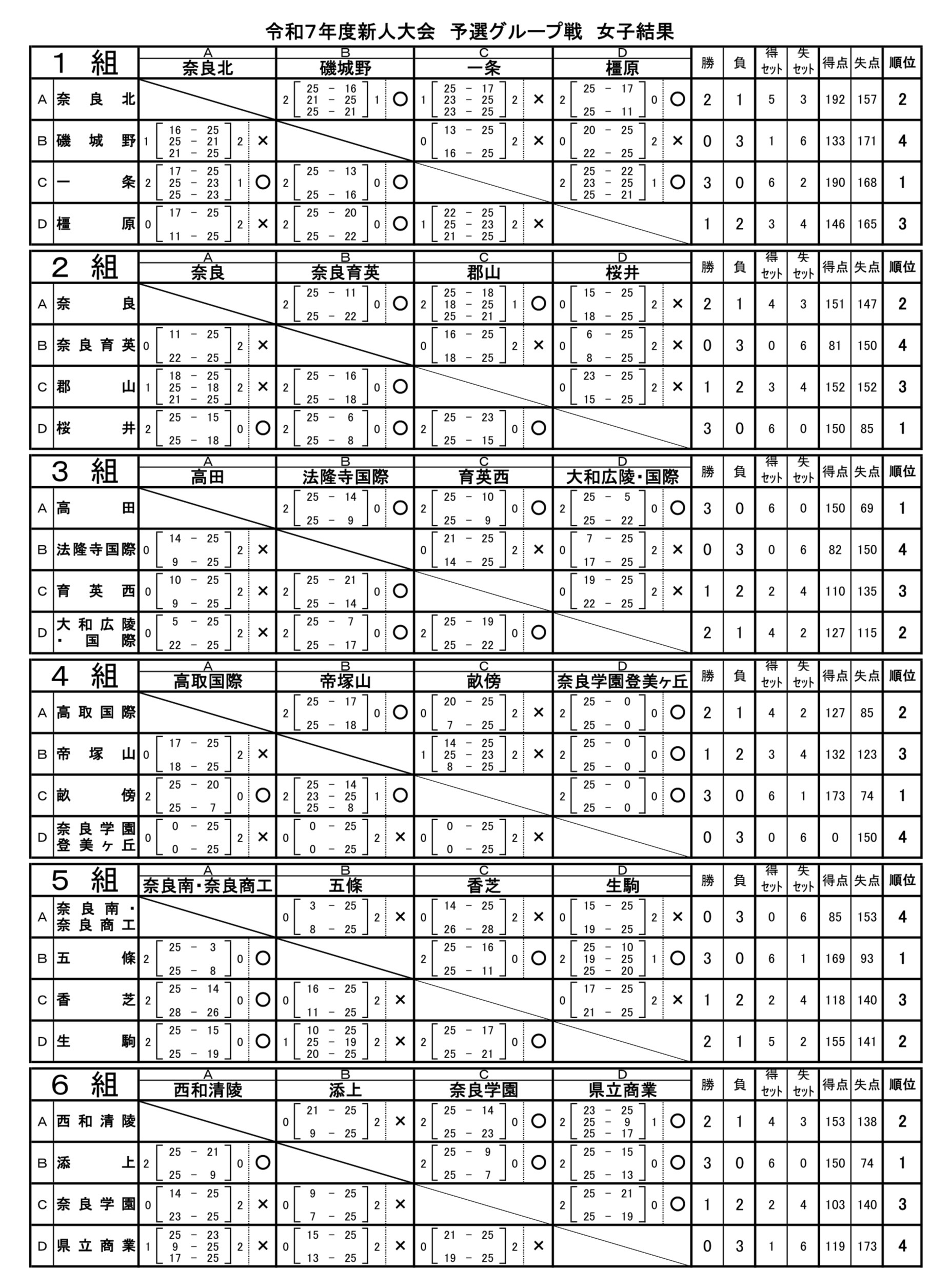 奈良 2025新人戦|令和7年度 高等学校新人バレーボール大会 女子結果
