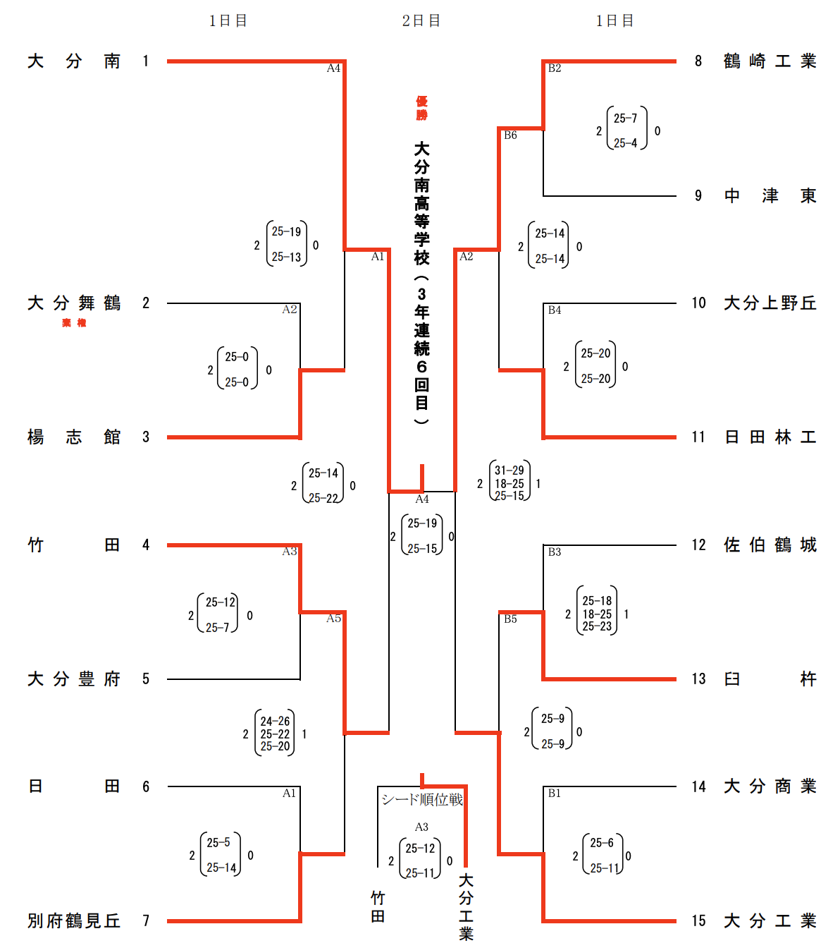 | 大分商業 | 0 | 6-25 11-25 | 2 | 大分工業 |
