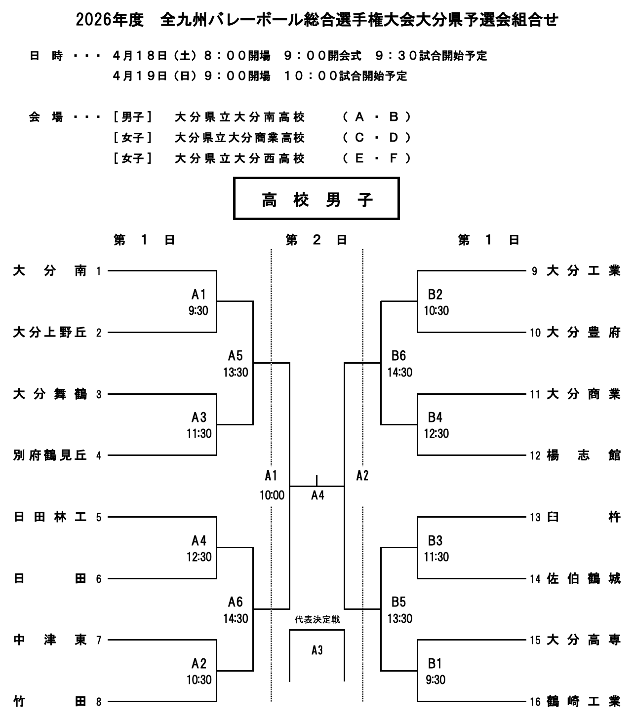 大分 2026九州総合選手権|第71回全九州バレーボール総合選手権大会県予選 男子結果