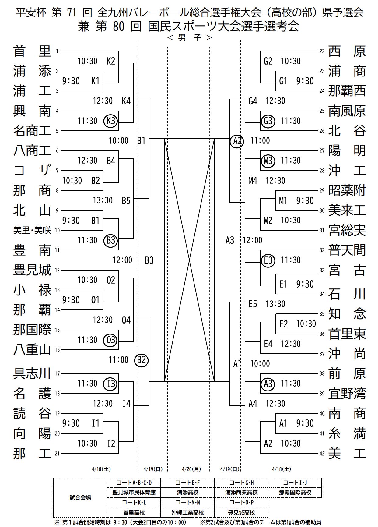 豊見城市民体育館、浦添高校、浦添商業高校、那覇国際高校