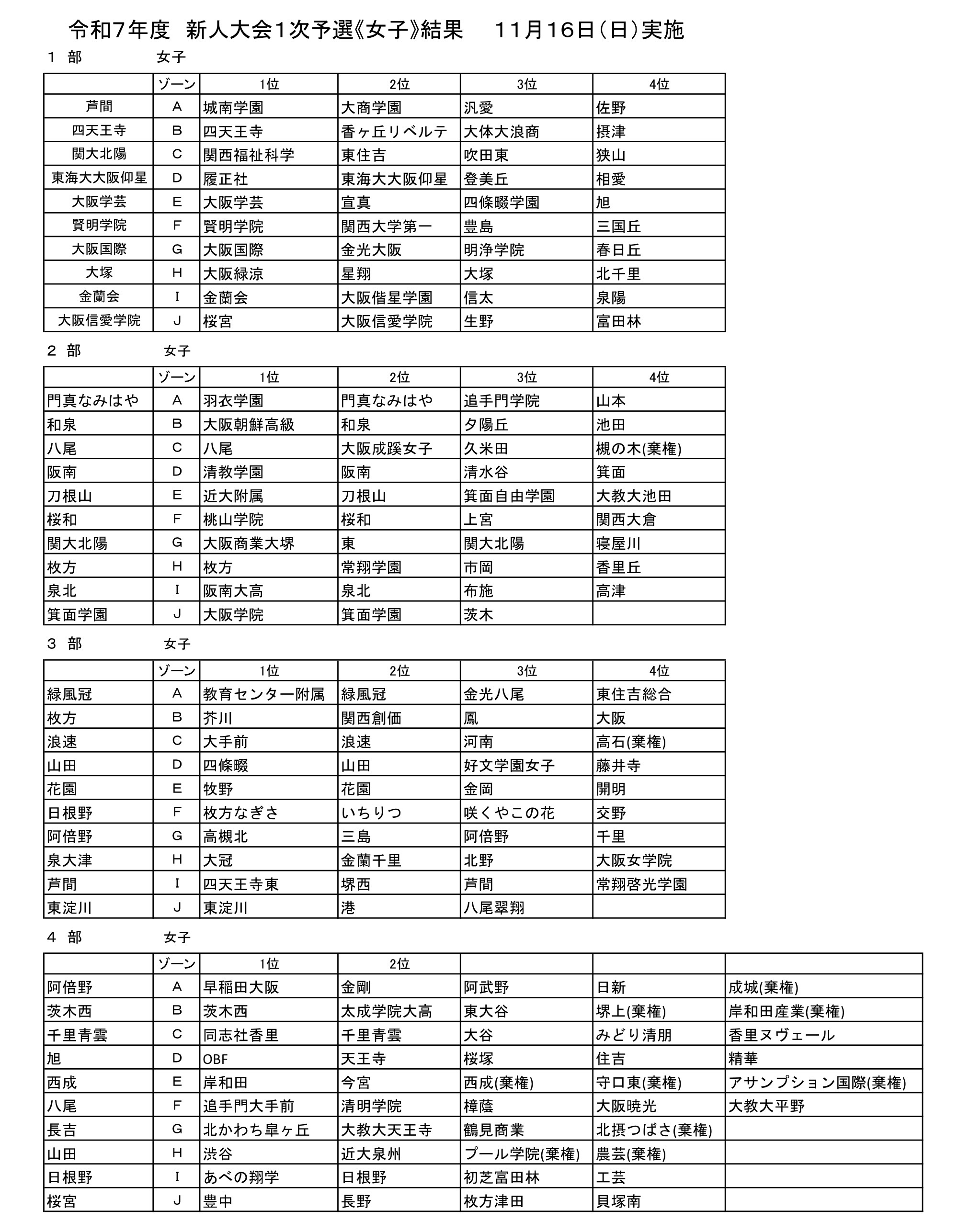 大阪 2025新人戦|令和7年度 高等学校新人バレーボール大会 女子結果