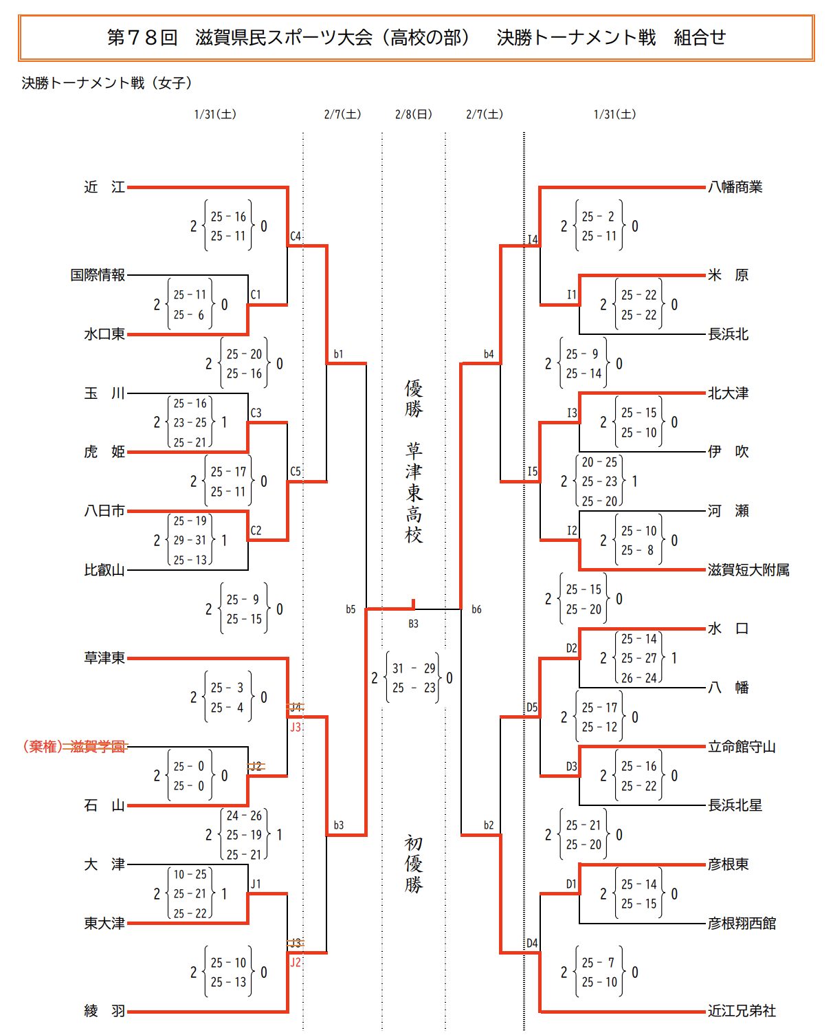| 草津東 | 2 | 31-29 25-23 | 0 | 八幡商業 |