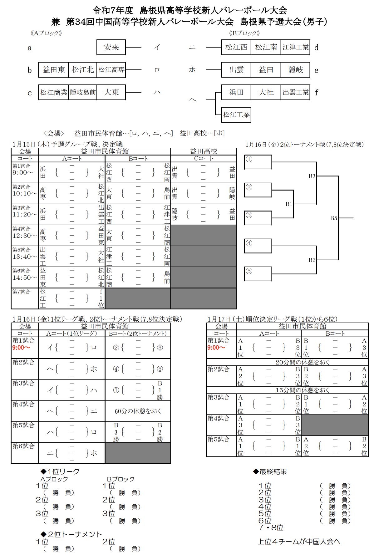 島根県で『令和7年度 県高等学校新人バレーボール大会』男子試合が始まります。