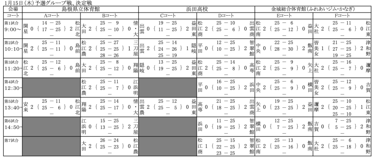 | 出雲農林 | 2 | 25-11 25-9 | 0 | 大 田 |