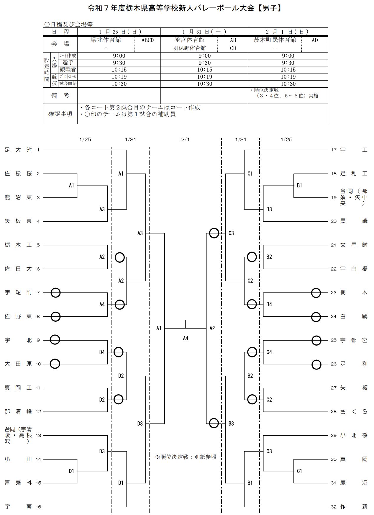 男子 雀宮体育館、明保野体育館