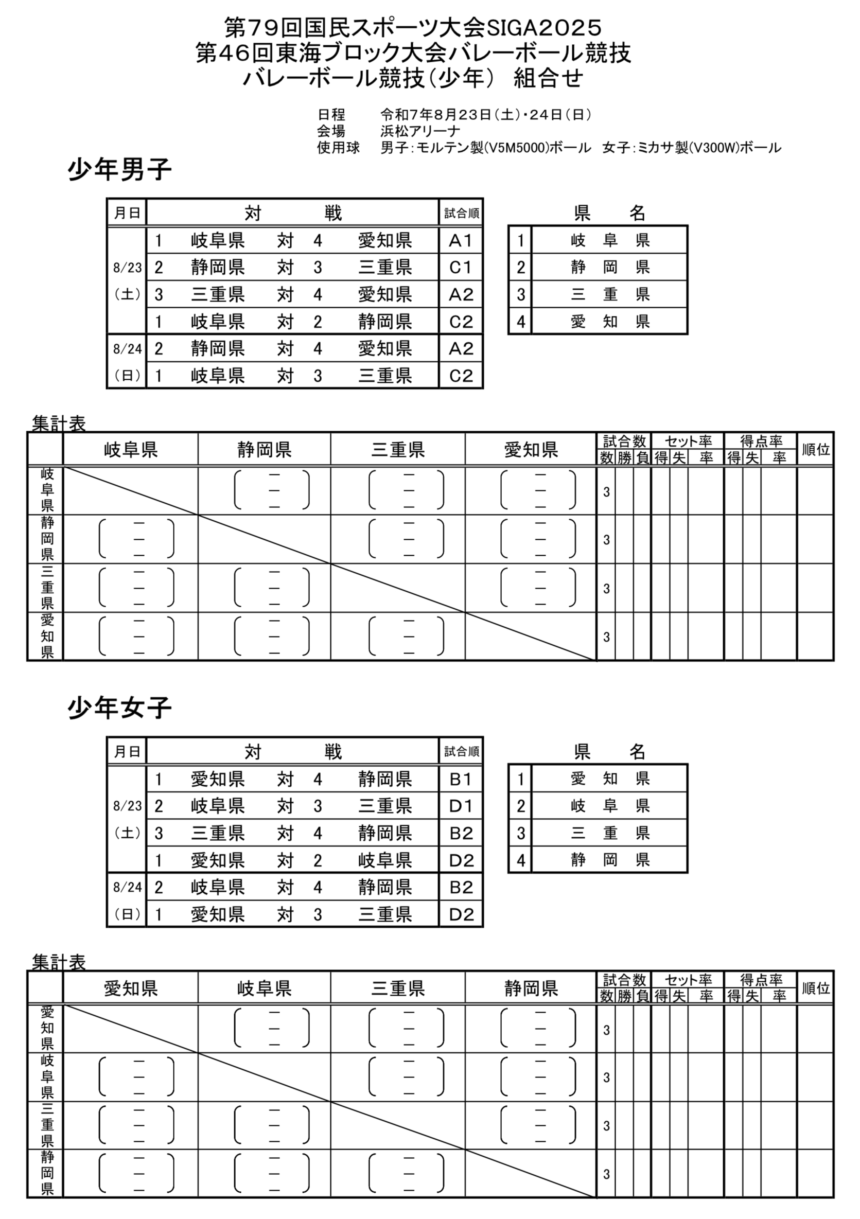 静岡県で『令和7年度 第79回国民スポーツ大会バレーボール競技 東海ブロック予選会』少年男女の試合が始まります。