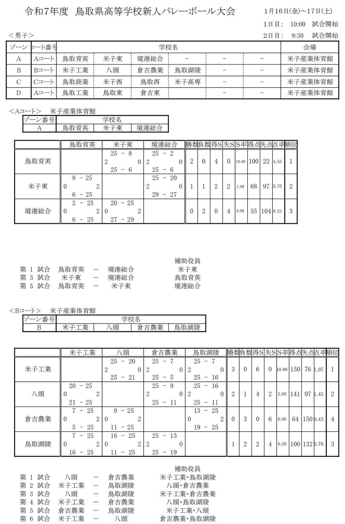 | 米子東 | 0 | 10-25 12-25 | 2 | 米子工業 |