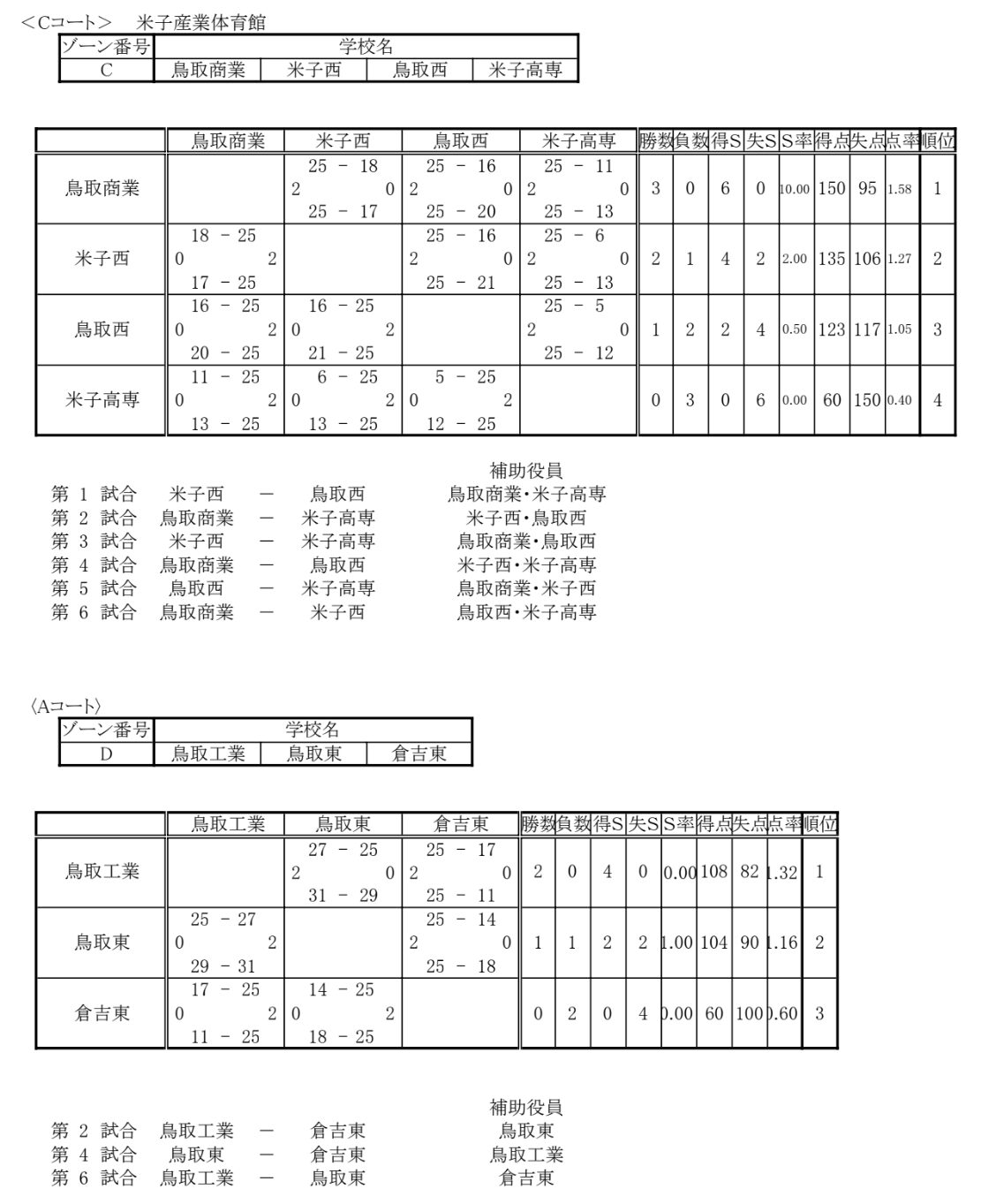 | 鳥取商業 | 2 | 25-10 25-20 | 0 | 鳥取東 |