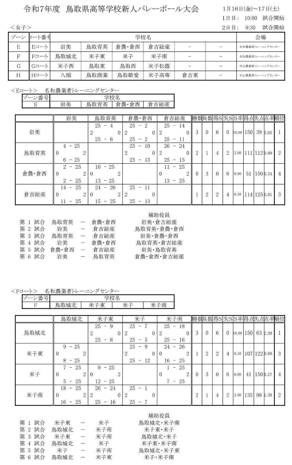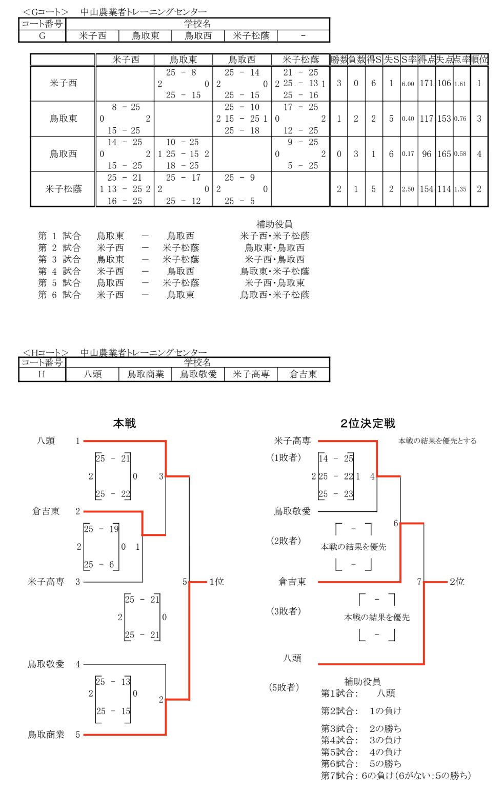 | 鳥取育英 | 0 | 7-25 13-25 | 2 | 鳥取城北 |