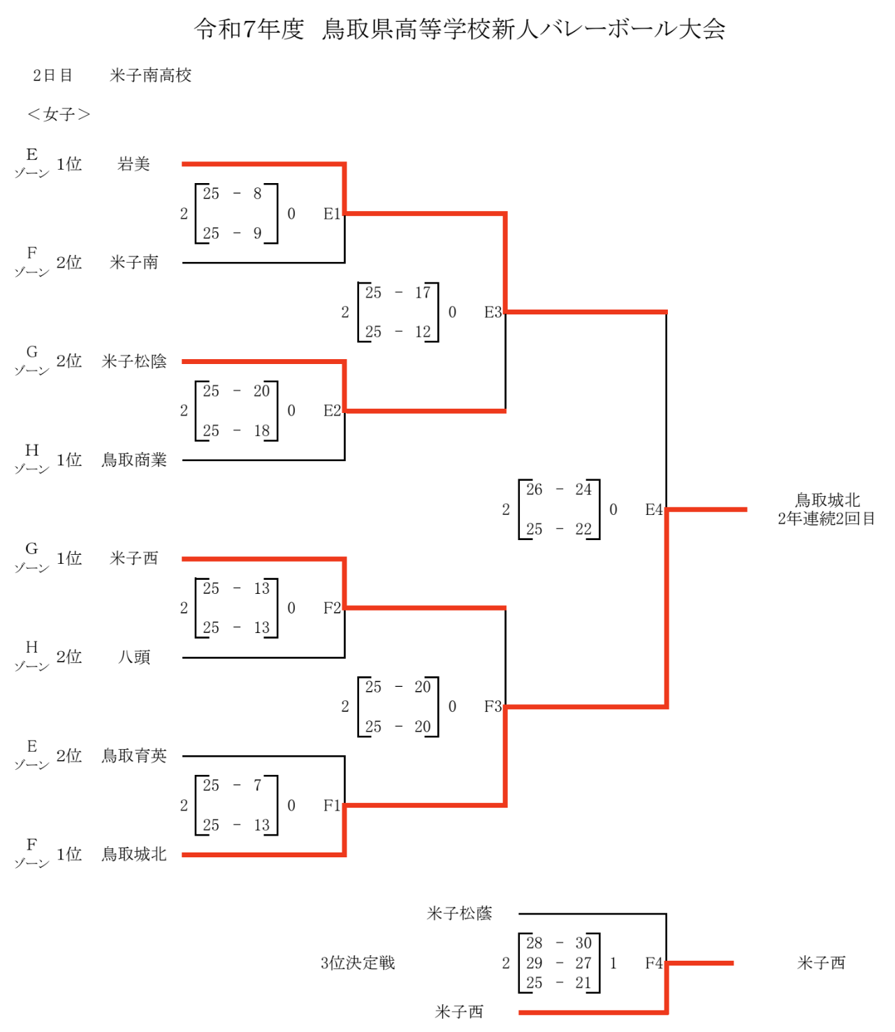 | 米子西 | 0 | 20-25 20-25 | 2 | 鳥取城北 |