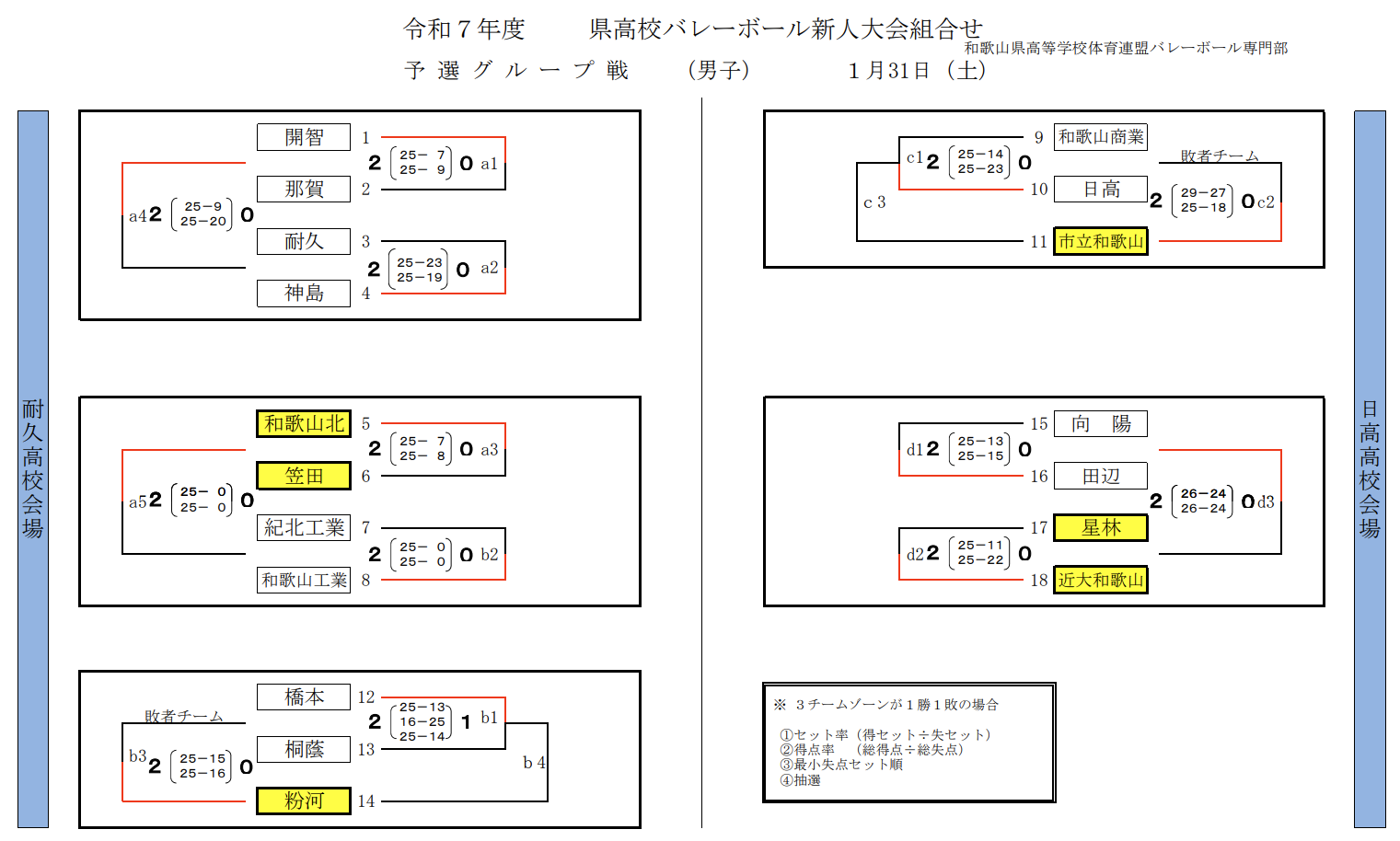 和歌山 2025新人戦|令和7年度 高等学校新人バレーボール大会 男子結果