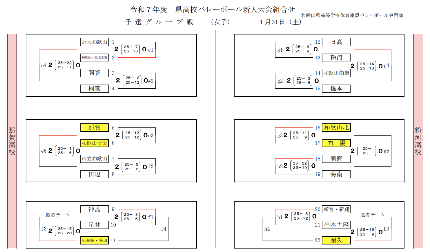和歌山 2025新人戦|令和7年度 高等学校新人バレーボール大会 女子結果