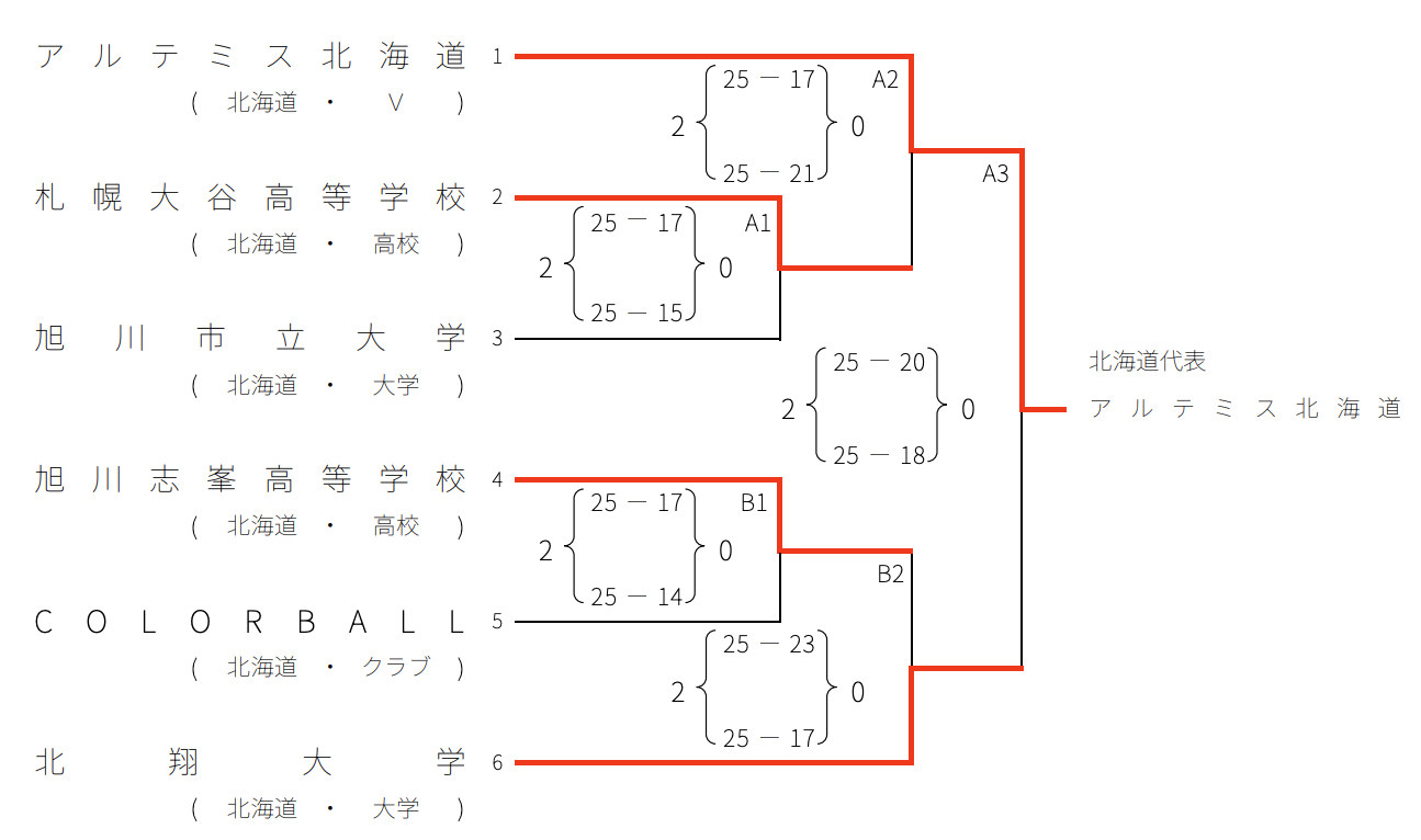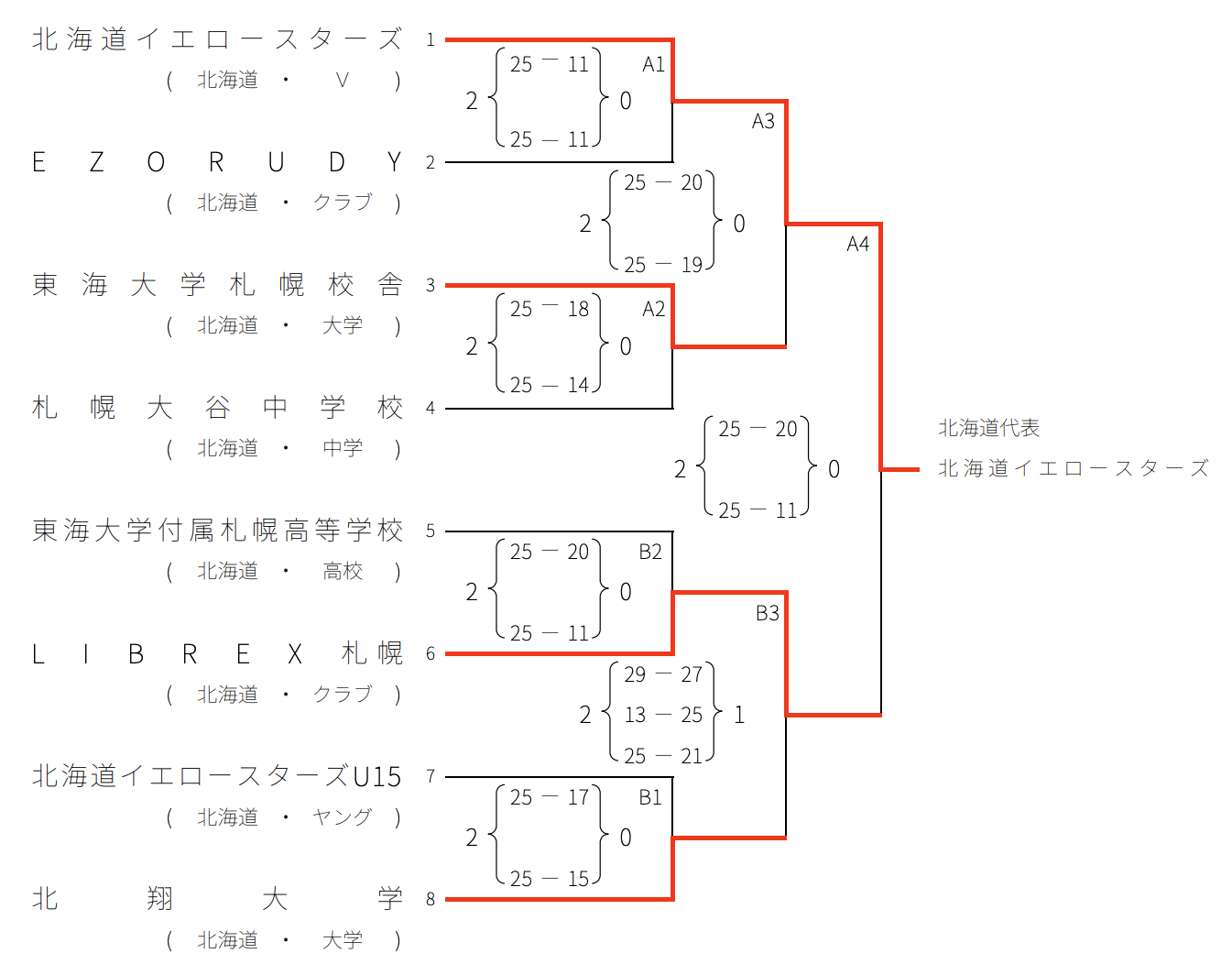 | 東海大学付属札幌高校 (高校) | 0 | 20-25 11-25 | 2 | LIBREX札幌 (クラブ) |